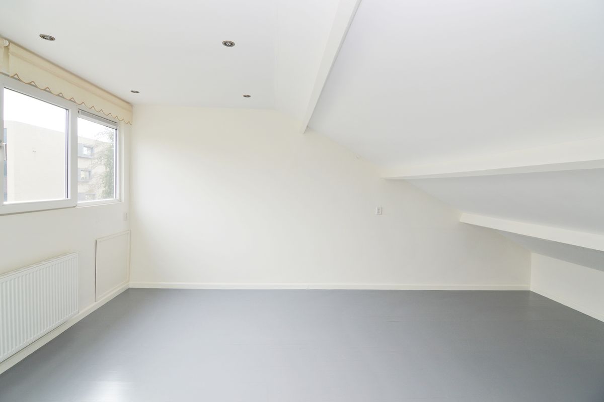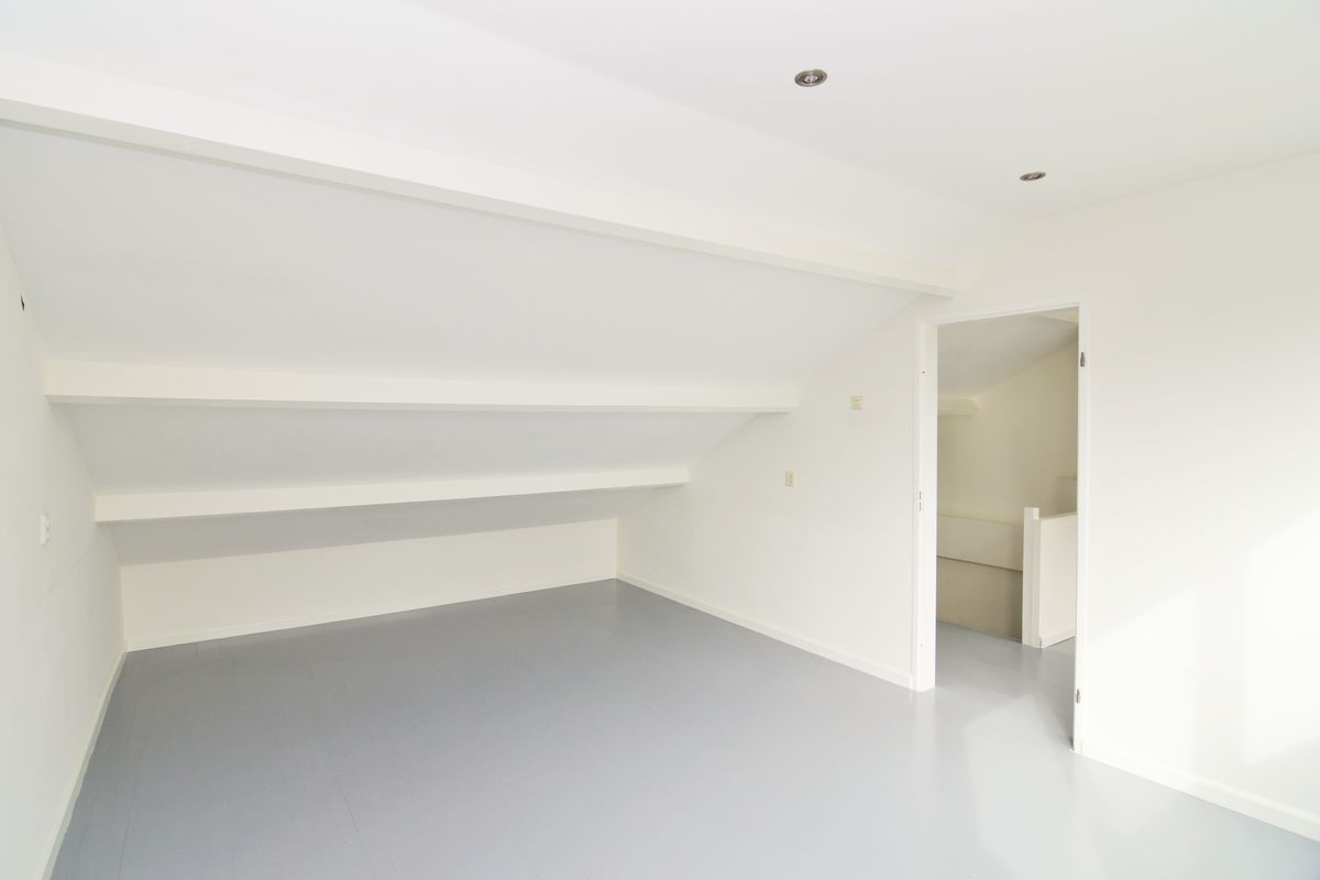 Ruime overloop met opstelling c.v.-ketel, en grote net afgewerkte slaapkamer met dakkapel over de gehele breedte.