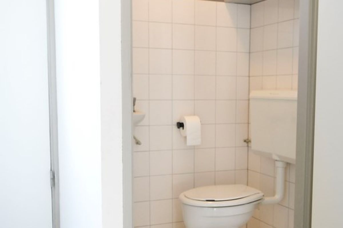 Gastentoilet 1,20 x 0,90 met tegelvloer, duoblok en wastafel.