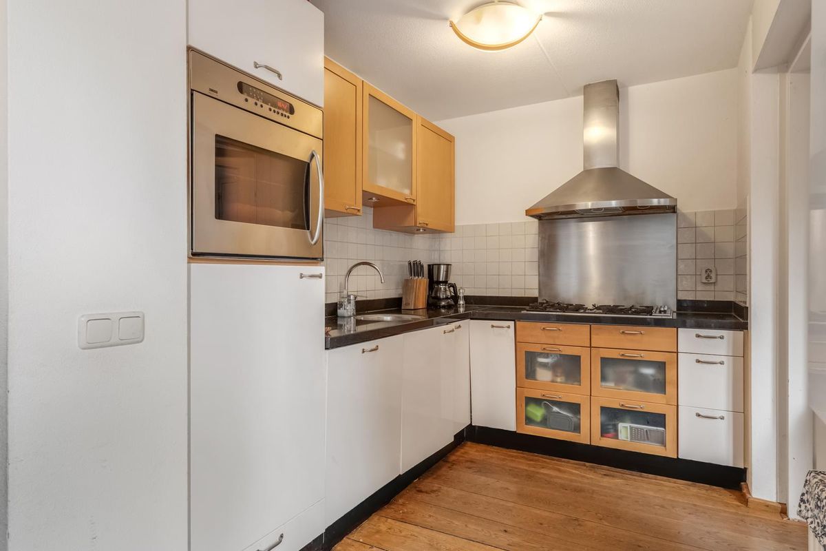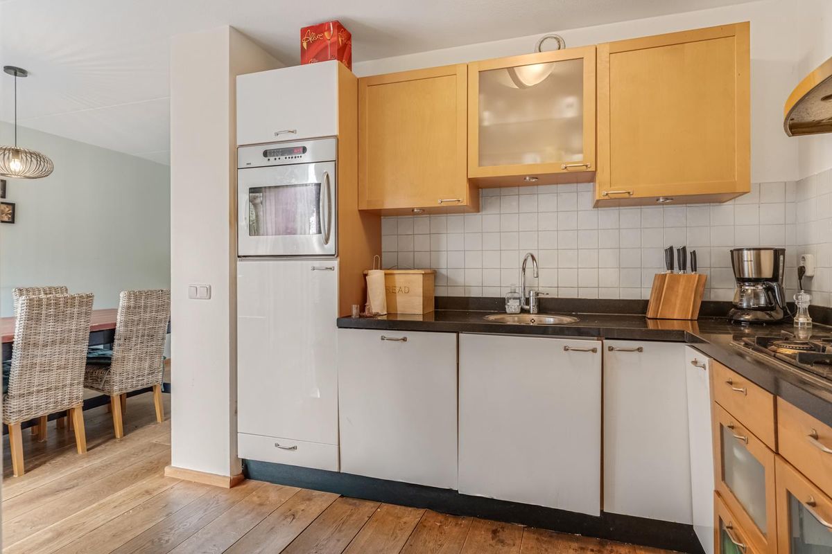 De keuken is praktisch ingedeeld en voorzien van inbouwapparatuur. De keuken is toe aan een opknapbeurt, maar dat biedt de kans om er iets geheel eigens van te maken. De woonkamer is royaal en geniet van veel natuurlijk licht dankzij de grote ramen. De houten vloer en neutrale kleuren zorgen voor een warme en huiselijke sfeer.