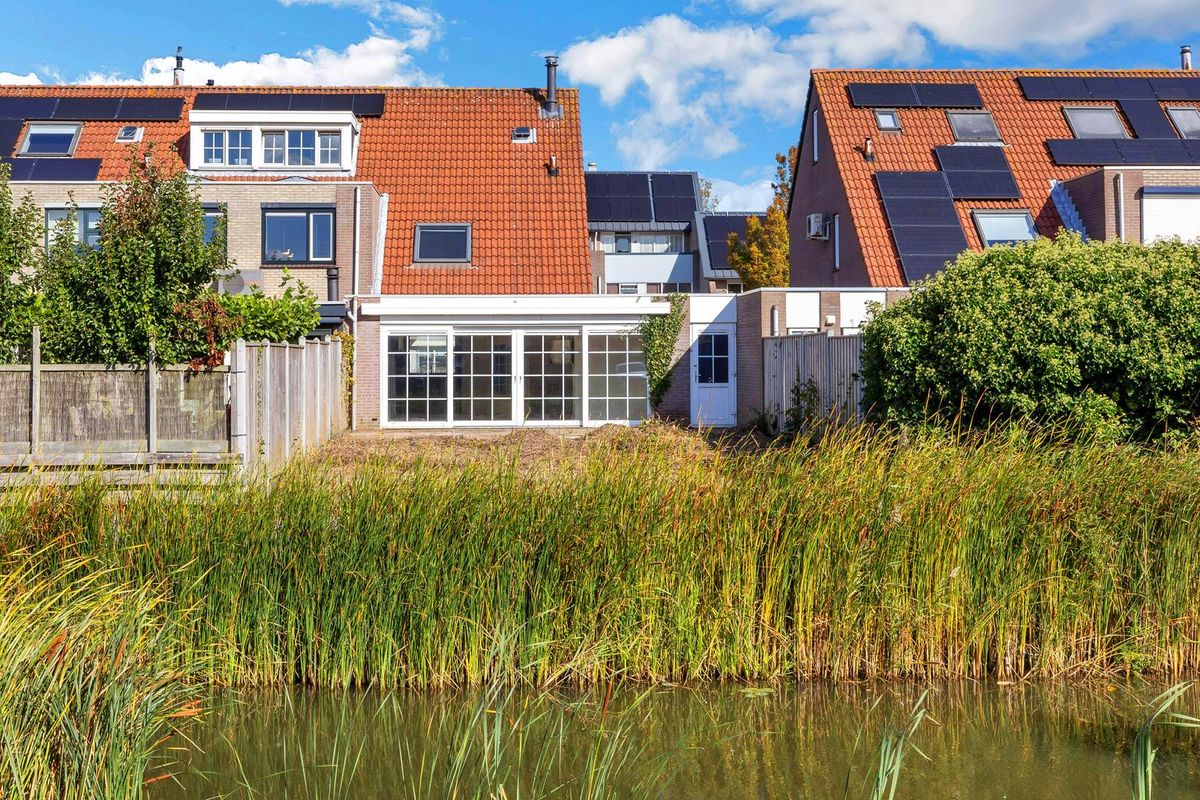 De achtertuin is gelegen aan een singel en bereikbaar via de schuifpui in de woonkamer. De tuin behoeft wat liefde en onderhoud, maar is een heerlijke plek in de zon. Via de garage is er een achterom.