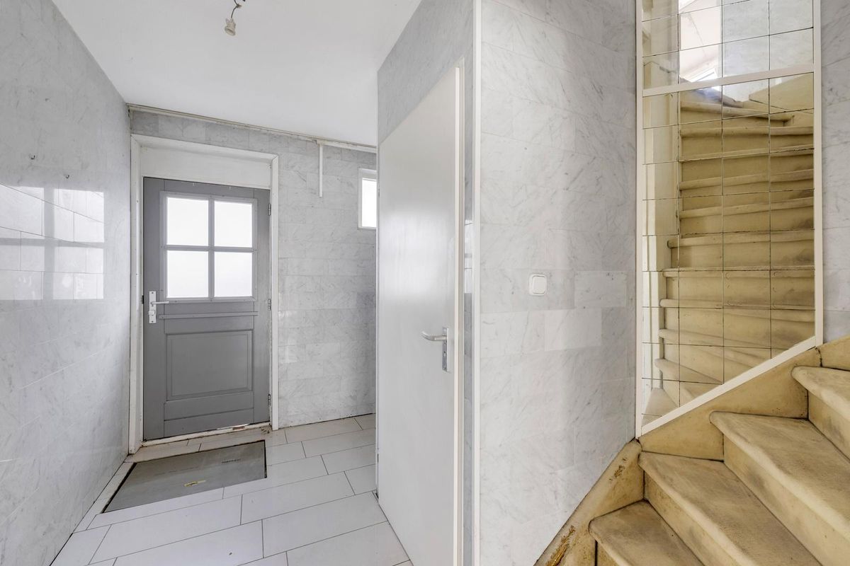 Entree/ hal met garderobe, meterkast, eenvoudig toilet en trapopgang.