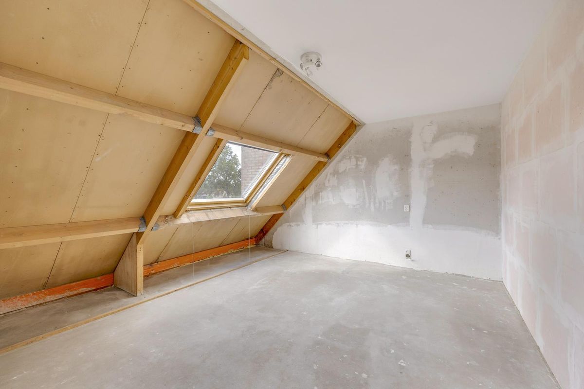 Deze kamer is voorzien van bergruimte achter knieschotten. Hier is mogelijk een dakraam of dakkapel te plaatsen.