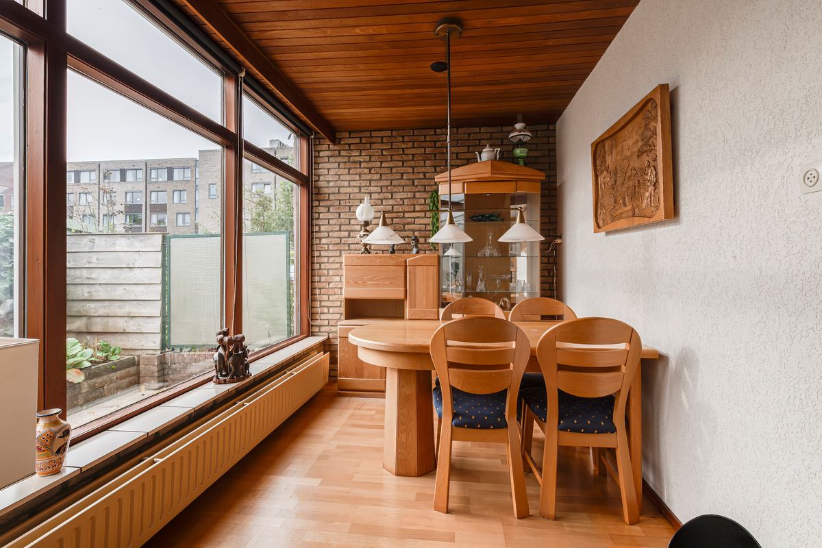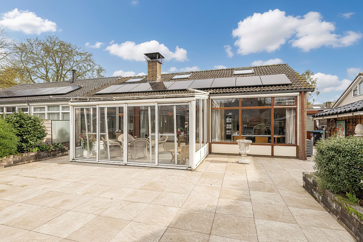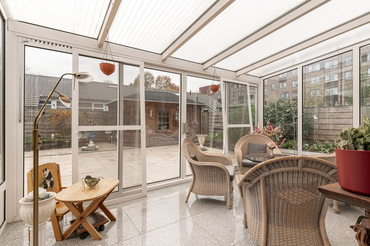 Vanuit de living wandel je moeiteloos door naar de serre, een heerlijk verlengstuk van de living. Door de grote ramen voel je je als het ware één met de tuin. De groot formaat granieten tegels en de radiator zorgen voor een stijlvolle en comfortabele sfeer, waardoor je hier het hele jaar aangenaam kunt vertoeven. Op diverse posities zijn stopcontacten aanwezig, zodat je de ruimte gemakkelijk kunt inrichten en gebruiken zoals jij dat wilt. De hordeuren zorgen ervoor dat je insectenvrij kunt ventileren, terwijl het elektrisch bedienbare zonnescherm met zon- en windsensor beschutting en praktisch gemak biedt.