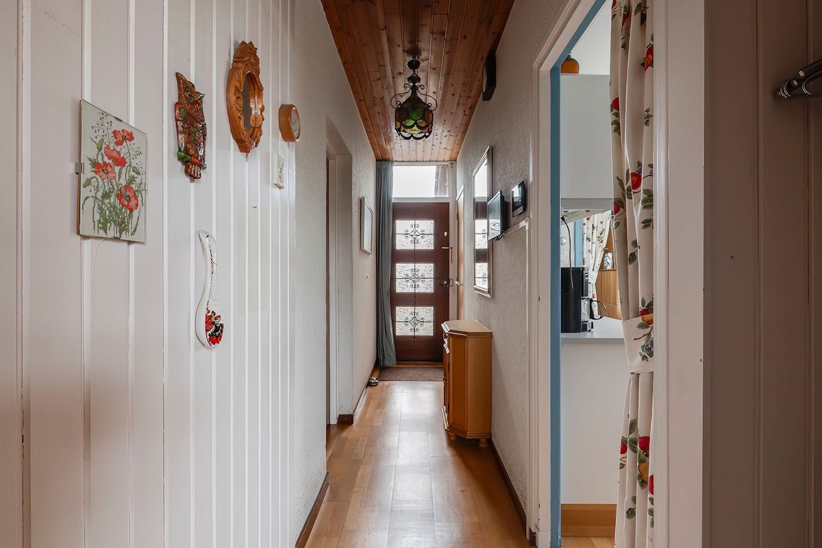 De oprit brengt je naar de entree van het huis en de garage. De ontvangsthal heet je welkom in dit huis met volop mogelijkheden. Direct valt op dat aan veiligheid is gedacht: bezoekers melden zich via de intercom met camera, en een tweede scherm toont het livebeeld van de oprit. De eiken lamelparketvloer loopt door in vrijwel alle woon- en slaapvertrekken en zorgt voor een warme eenheid.