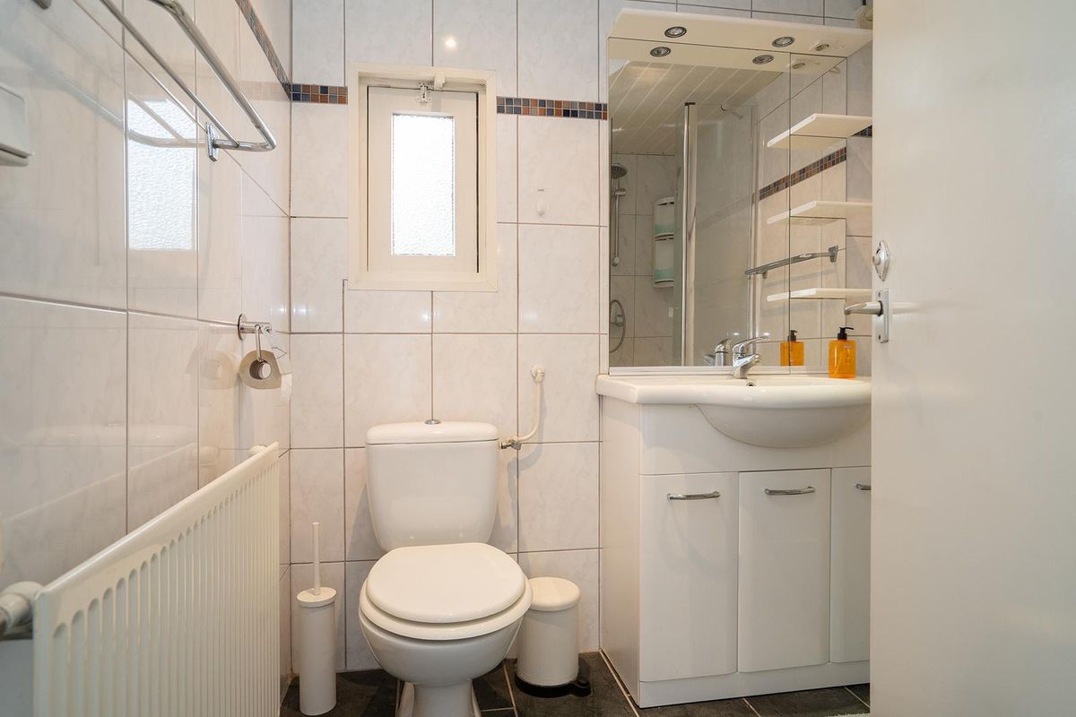 1e Verdieping: Overloop, twee ruime slaapkamers en een tweede badkamer, welke is voorzien van een tweede toilet, douche en een wastafel.