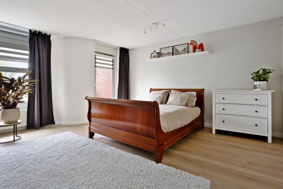 De tweede verdieping biedt nog twee kamers: een ruime slaapkamer aan de achterzijde en een kleinere kamer naast de vide, perfect als hobby- of werkkamer. Verder is er een aparte was- en stookruimte en toegang tot het zeer royale dakterras op het zuiden met een fraaie houten vlonder en moderne afwerking. Deze geeft een prachtig uitzicht over het groen – een heerlijke plek om van de zon te genieten.