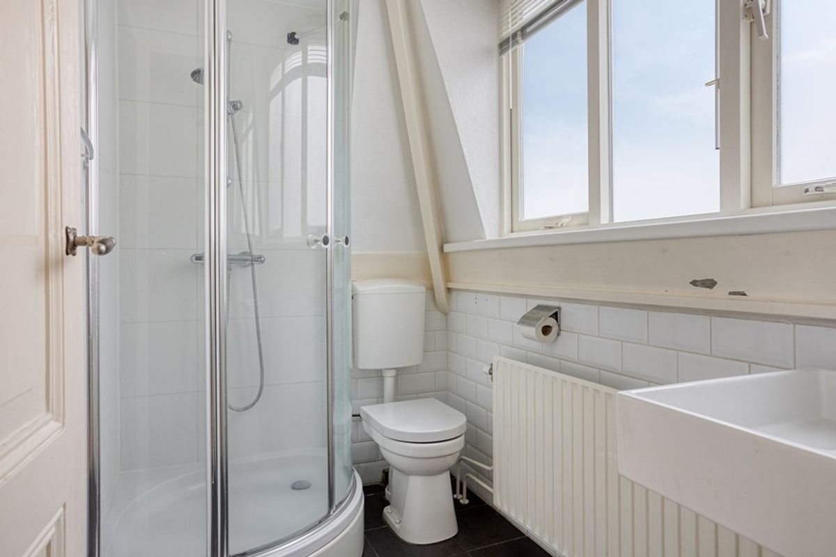 • Een badkamer met toilet, douche en wastafel;
