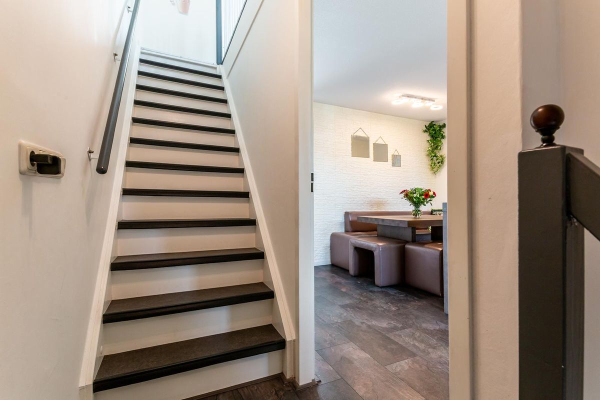 Aan de voorzijde vind je de moderne keuken, die volledig is vernieuwd en van alle gemakken is voorzien. Met een stijlvol kookeiland en hoogwaardige inbouwapparatuur is dit een echte eyecatcher voor kookliefhebbers. Onder de trap is nog een handige inpandige berging te vinden, ideaal voor extra opslagruimte.