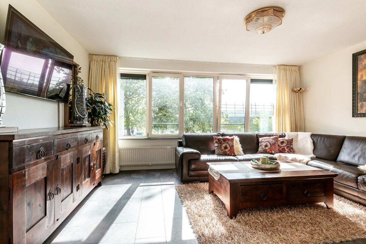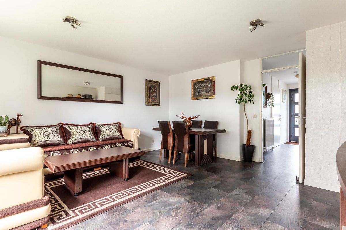 De hele eerste verdieping is afgewerkt met een keurige laminaatvloer. Aan de achterzijde zorgen kunststof kozijnen en grote raampartijen voor veel lichtinval en een frisse uitstraling. Hier bevindt zich de royale woonkamer, een fijne plek om te ontspannen.
