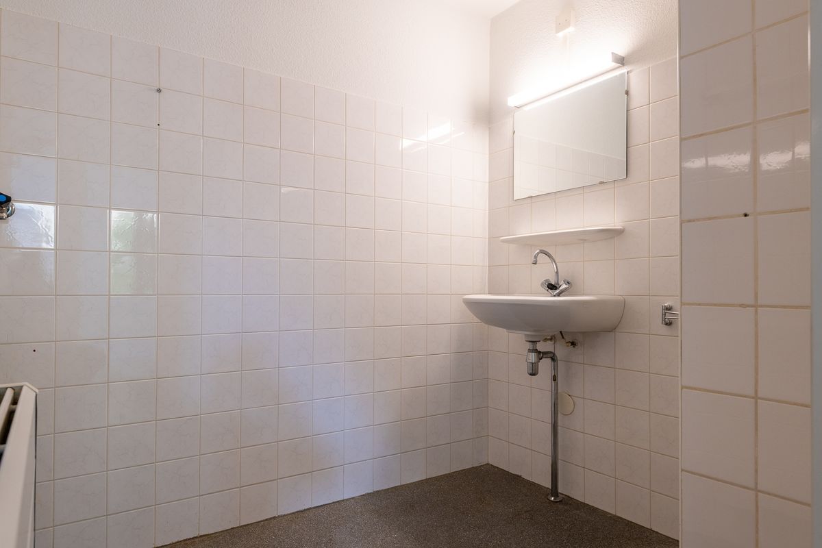 De volledig betegelde badkamer (ca. m x 2.45 m) beschikt over een ruime douche en wastafelmeubel, tevens aansluiting voor wasapparatuur;