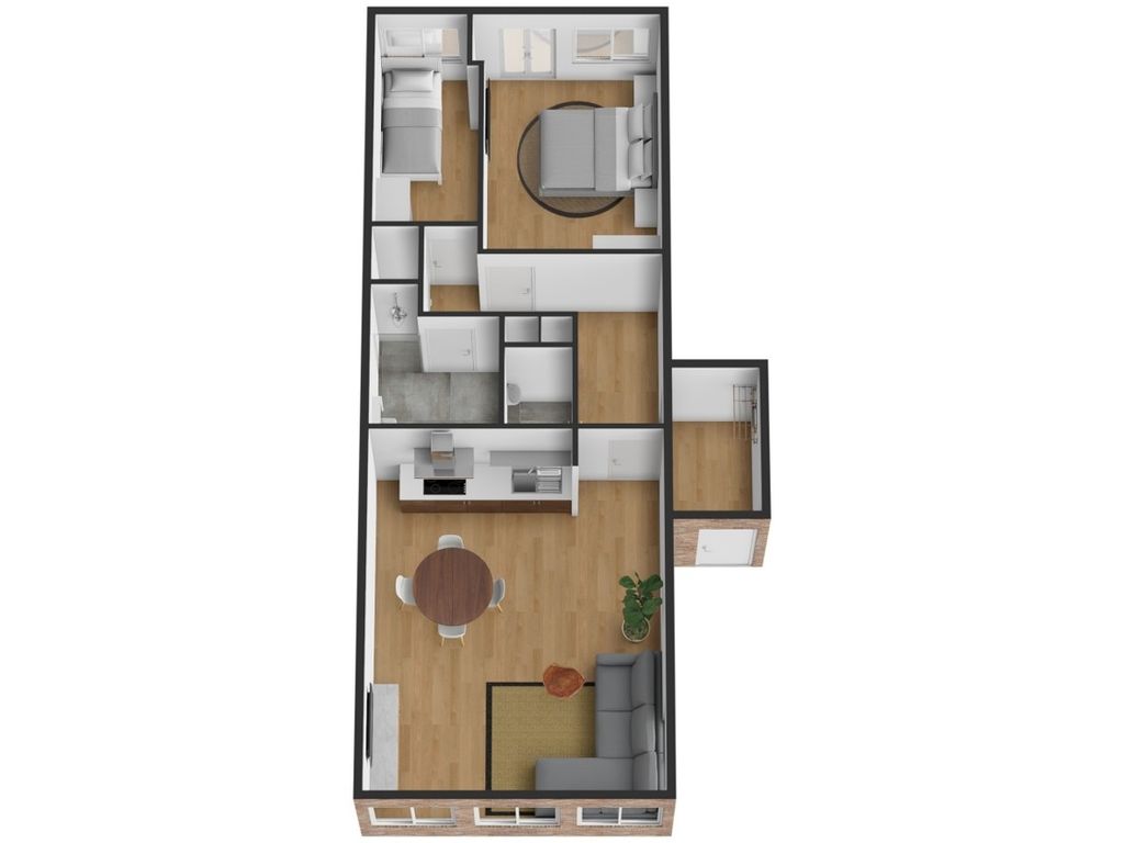 Ruim en licht 3-kamer appartement met tuin en achterom.