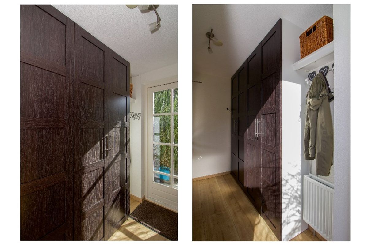Aan de achterzijde, grenzend aan de woonkamer, ligt een bijkeuken die ideaal te gebruiken is als extra opslag. Vanuit de bijkeuken is er een directe toegang naar de achtertuin.