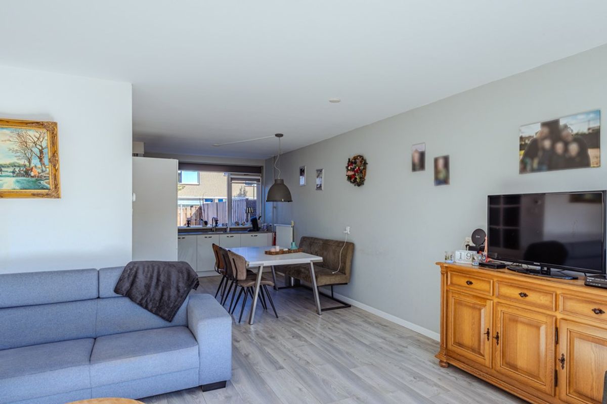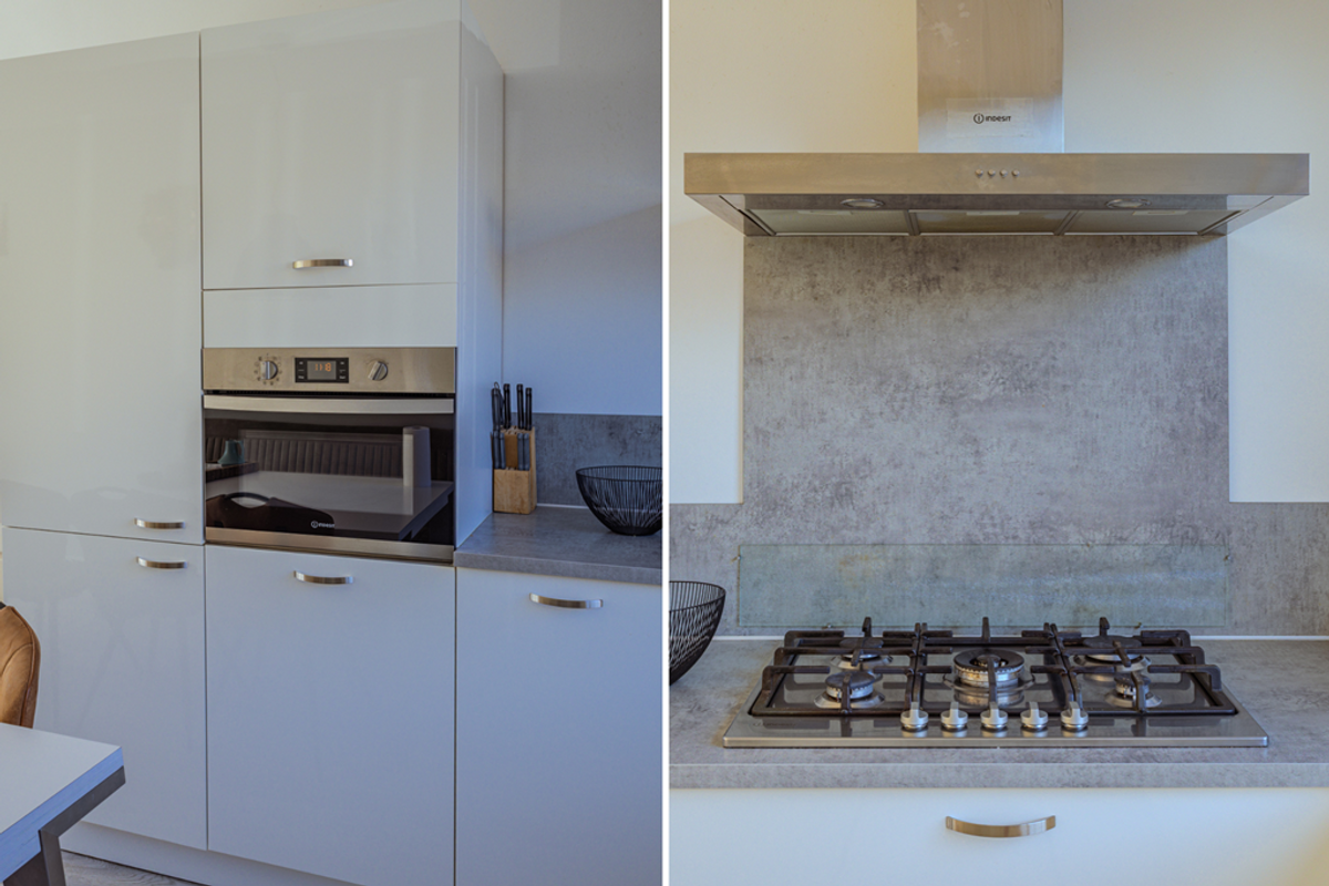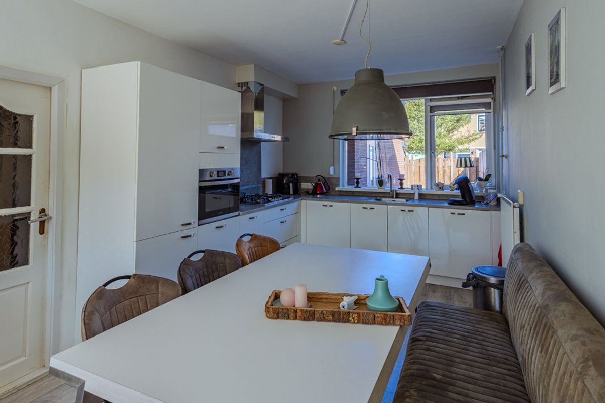 Entree in de hal met garderoberuimte, toegang tot de inpandige berging/garage (ca. 16m²), toiletruimte voorzien van een staand toilet en de trapopgang. De L-vormige woonkamer is uitgerust met grote raampartijen aan de tuinzijde alwaar het zitgedeelte zich bevindt, door het vele natuurlijke licht is het hier heerlijk vertoeven en door de tuindeur stap je zo de achtertuin in. Het eetgedeelte ligt dicht bij de open keuken, wat zorgt voor een praktische en gezellige indeling. Deze ruime open keuken in L-opstelling is in 2020 geplaatst en beschikt naast de vele opbergmogelijkheden onder andere over een koel-/vriescombinatie, een gasfornuis en een vaatwasser.