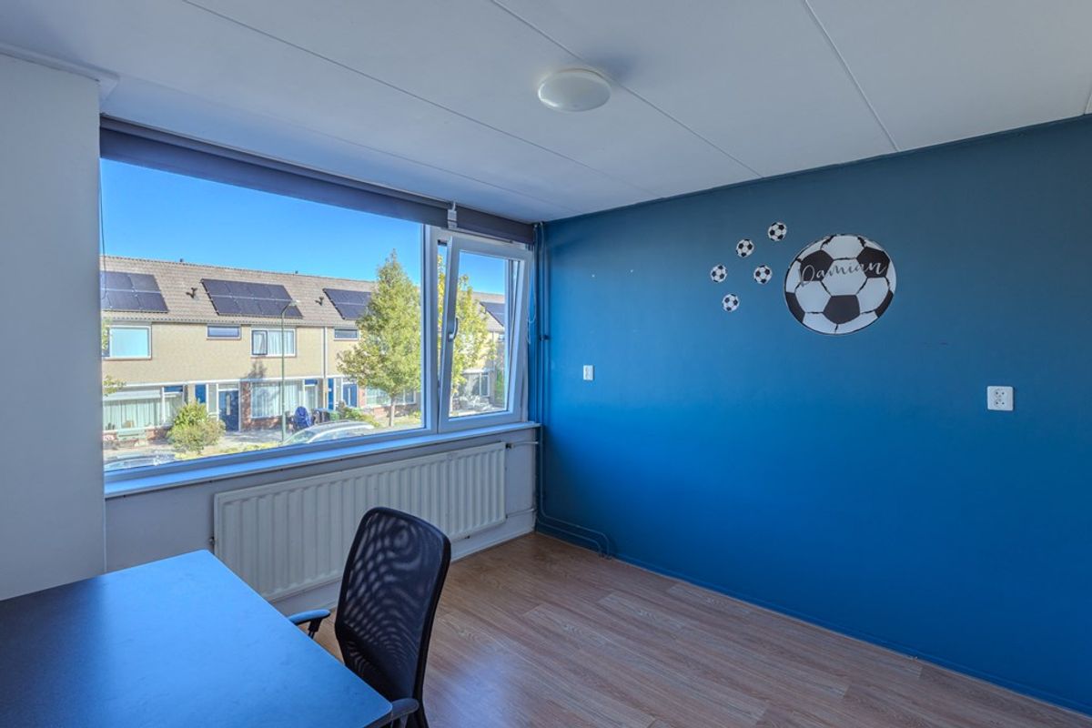 De overloop biedt toegang tot 3 slaapkamers, de badkamer en de trapopgang. De ouderslaapkamer biedt toegang tot een inpandig balkon en is net als het balkon voorzien van een rolluik. Beide overige slaapkamers zijn uitgerust met vaste kasten. Daarnaast grenst de 2de slaapkamer eveneens aan het balkon. De 3de slaapkamer is v.v. kunststof kozijnen. De nette en geheel betegelde badkamer beschikt over een inloopdouche en een wastafel met meubel.