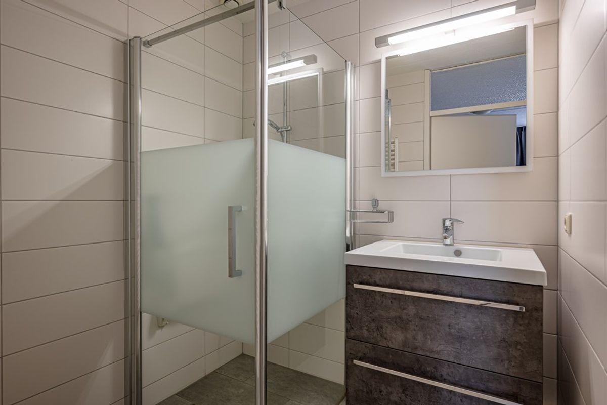 Op de verdieping vindt u een overloop met praktische kast waarin de CV-combiketel (Remeha, 2011) is geplaatst. Verder zijn hier twee slaapkamers, waarvan één met riante bergruimte en één is voorzien van een elektrisch screen. De nette volledig betegelde badkamer is uitgerust met een wastafel, ligbad met douche, badmeubel en is nauwelijks gebruikt.