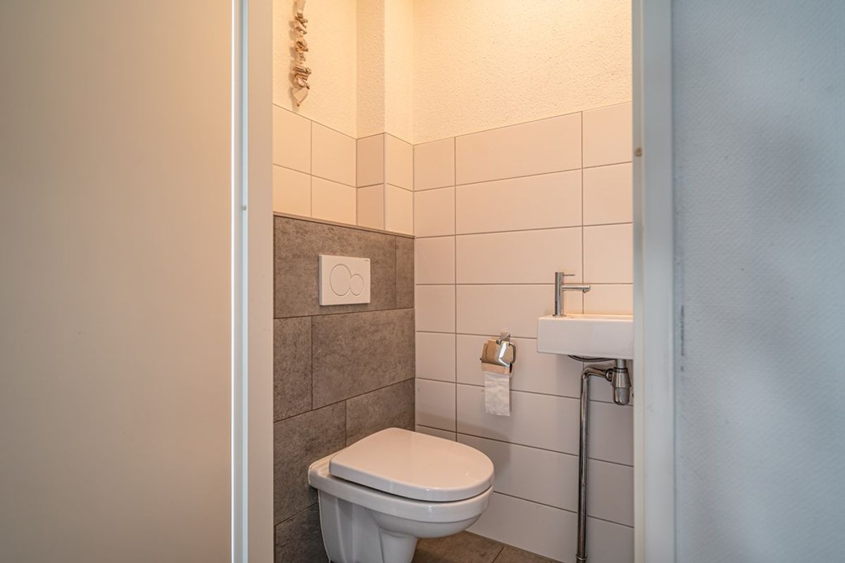 Via de entree/hal met meterkast, luxe hangend toilet met fontein en trapopgang (met airco) komt u in de royale, straatgerichte woonkamer. De gehele begane grond is voorzien van een nette laminaatvloer. Vanuit de hal bereikt u de slaapkamer op de begane grond, met directe toegang tot een keurige badkamer voorzien van douchecabine, designradiator en badmeubel, ideaal voor gelijkvloers wonen.