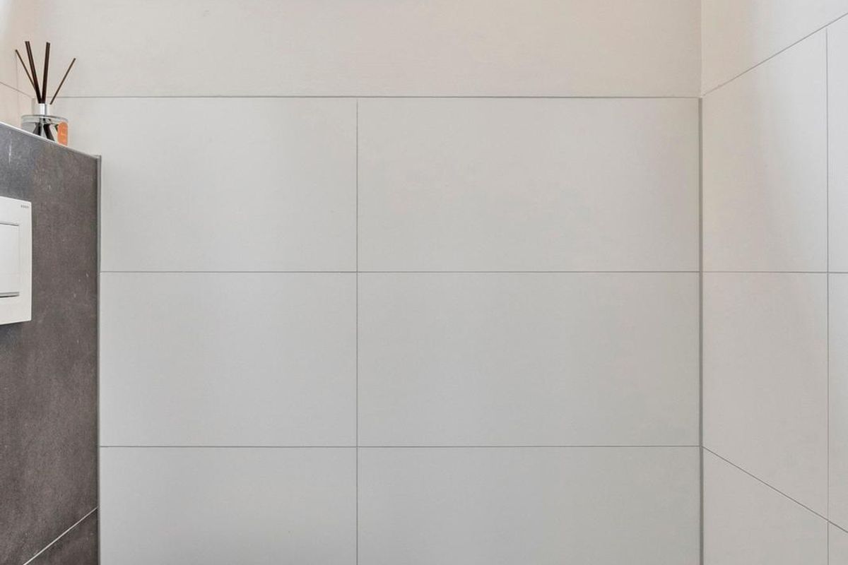 De overloop biedt toegang tot een moderne badkamer (2019/2020) voorzien van een toilet, regendouche en wastafelmeubel met een dubbele kraan.