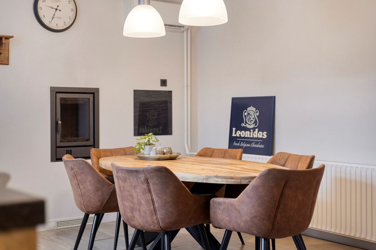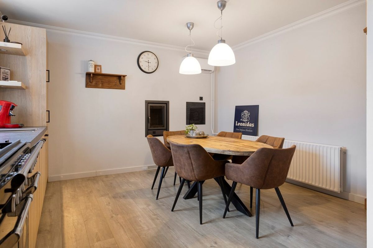 Sfeer en comfort, bij binnenkomst valt direct de royale woonkamer op, voorzien van een sfeervolle open haard en een nette laminaatvloer. Het hart van het huis is de landelijke massief houten keuken van Pieters. Deze is van alle gemakken voorzien, een Stoves fornuis (5-pits met 3 ovens) voor de kookliefhebber, een Quooker, vaatwasser en koelkast. Ook hier zorgt een tweede open haard voor extra gezelligheid.