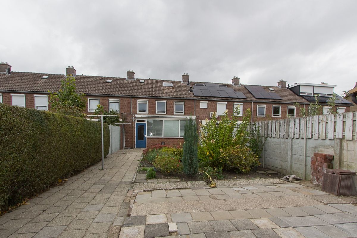 De voortuin is verzorgd aangelegd en biedt een nette aanblik. De zonnige achtertuin, gelegen op het zuiden, beschikt over sierbestrating, een terras, een vrijstaande stenen berging met elektra en een achterom.