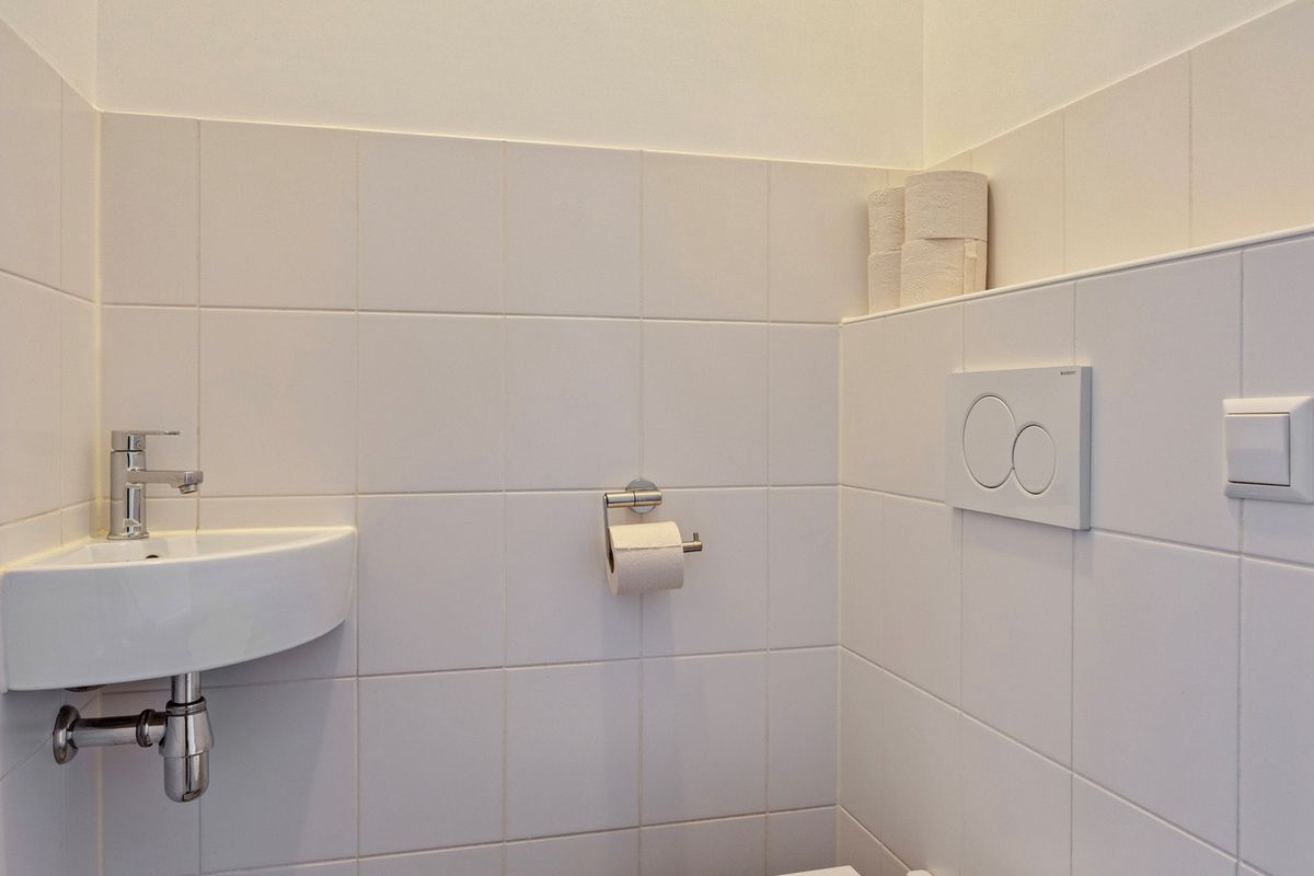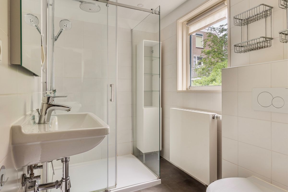 1e verdieping: Overloop met toegang tot 2 ruime slaapkamers en de badkamer. De badkamer beschikt over een aparte douche, zwevend toilet en een wastafel.