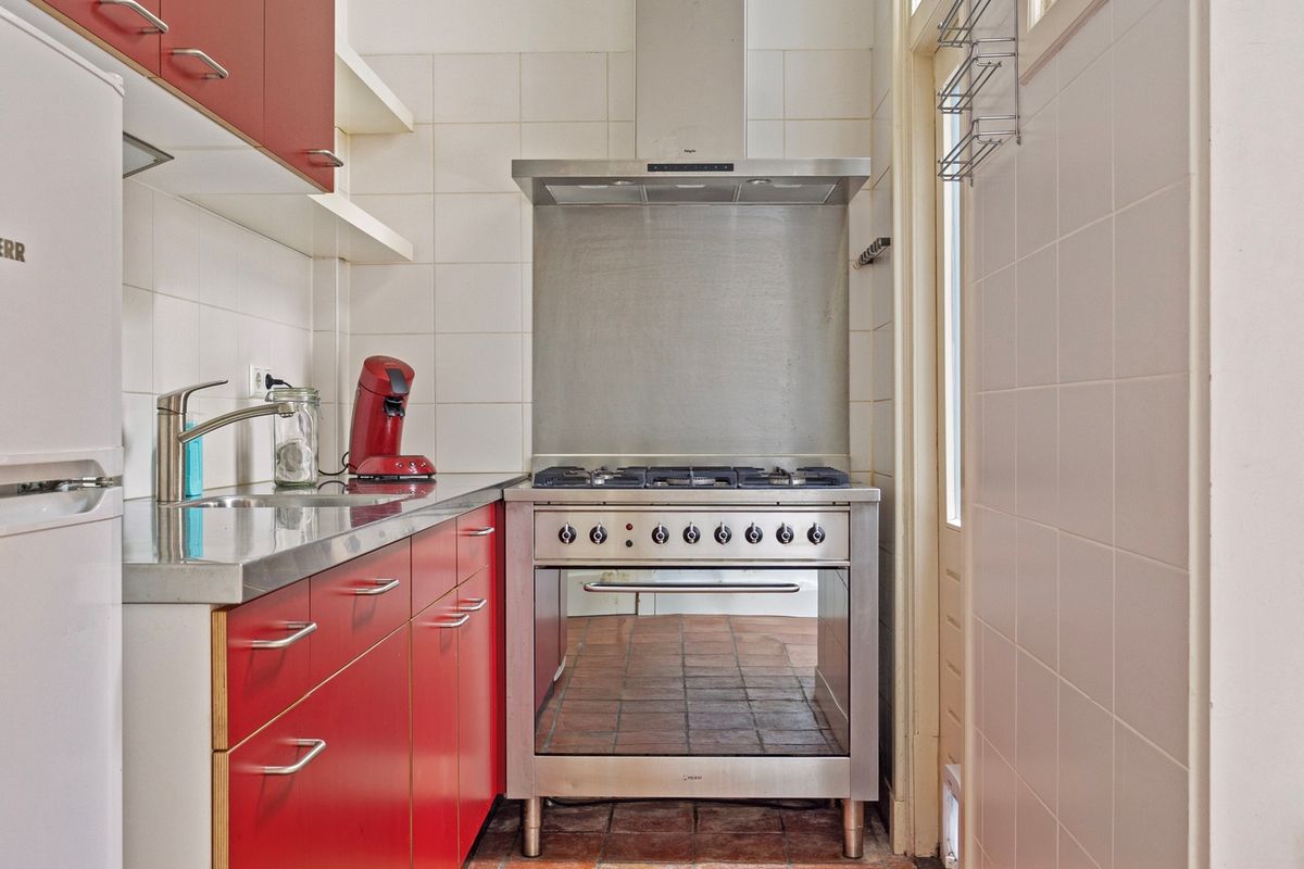 Begane grond: Entree met meterkast. Ruime hal met separaat toilet en fonteintje. Royale woonkamer met halfopen keuken voorzien van verschillende apparatuur zoals een 5-pits gasfornuis, oven, afzuigkap, vaatwasser, combi-ovenmagnetron en koel-vriescombinatie. Vanuit de keuken heeft u toegang tot de tuin van 7m2 gelegen op het westen.