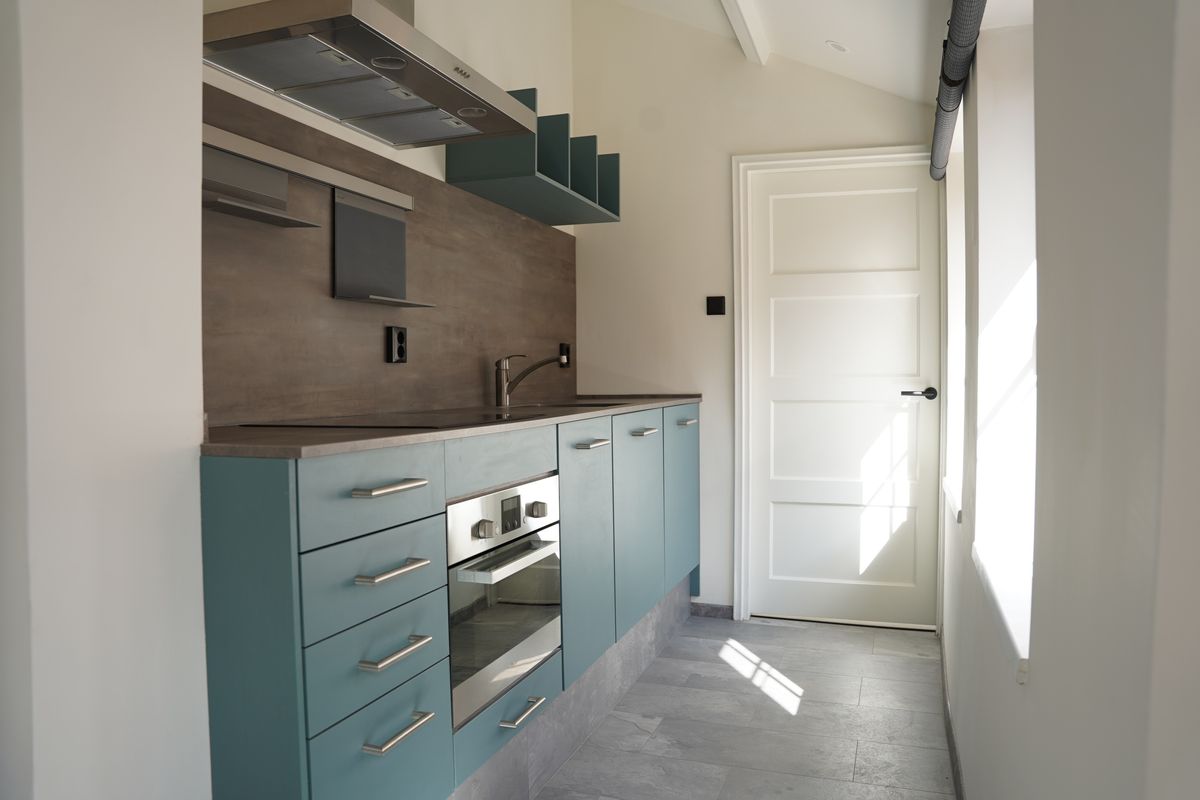 De keuken is ook volledig nieuw en uitgerust met moderne inbouwapparatuur: een koelkast, compacte vaatwasser, combi-oven en een inductiekookplaat. De vinylvloer is onderhoudsvriendelijk.