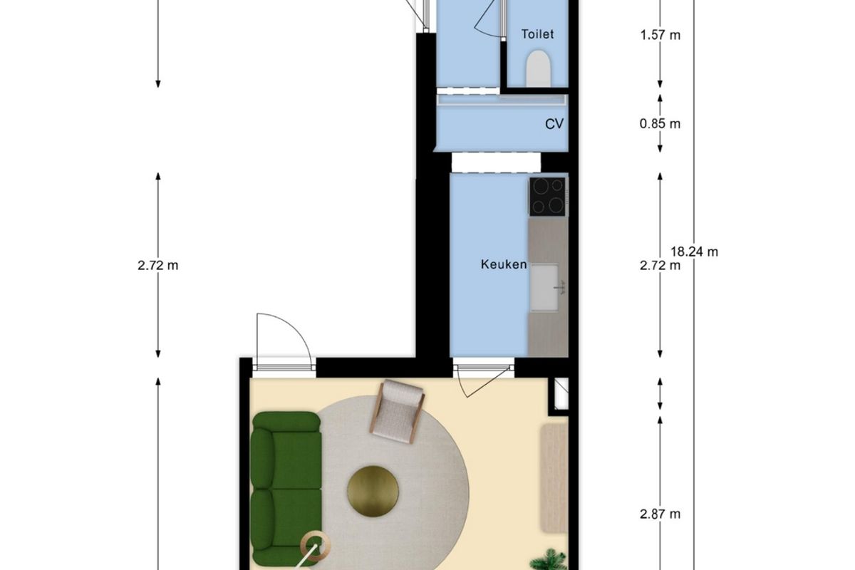 Achter de keuken – in een nisje - bevindt zich de opstelplaats voor de cv-ketel.