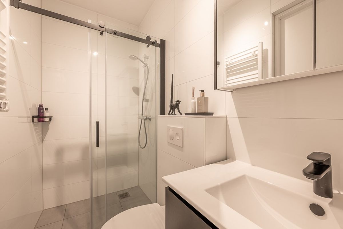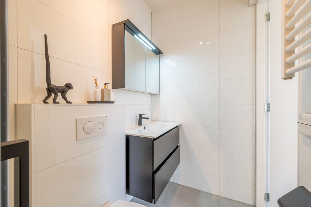 De luxe badkamer (2024) is stijlvol afgewerkt en voorzien van een inloopdouche, wastafelmeubel en een zwevend toilet.