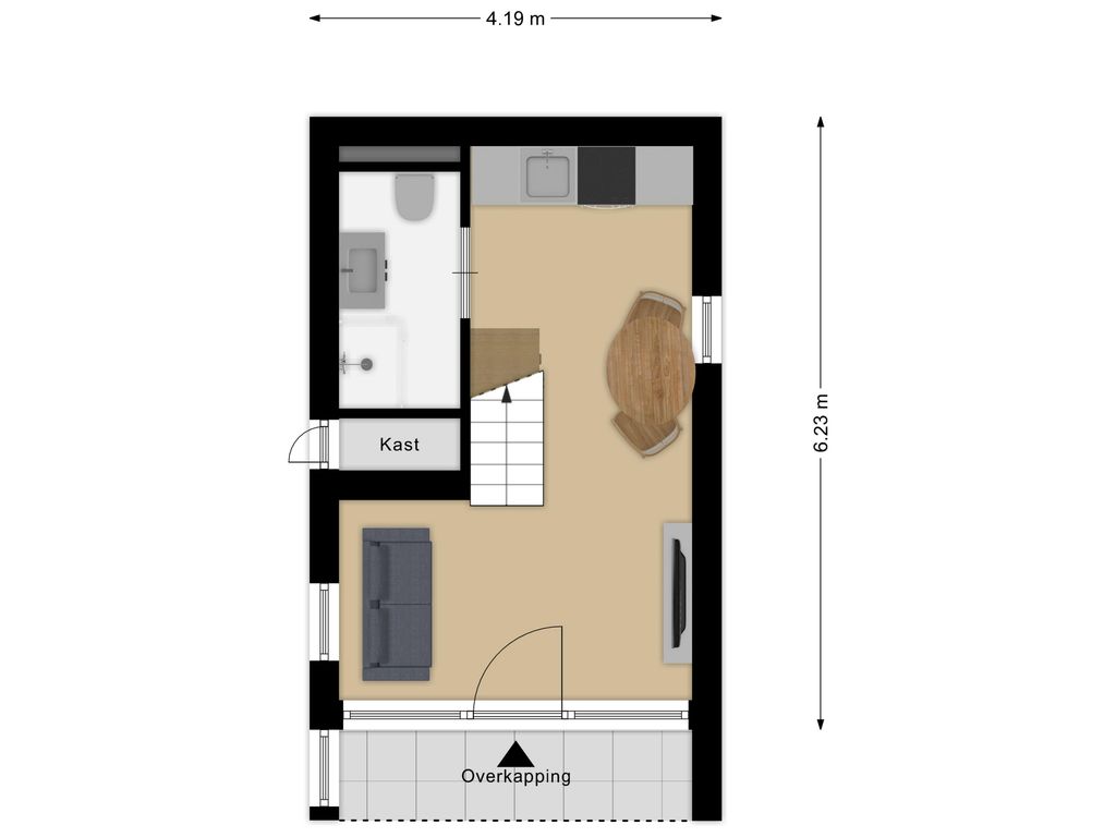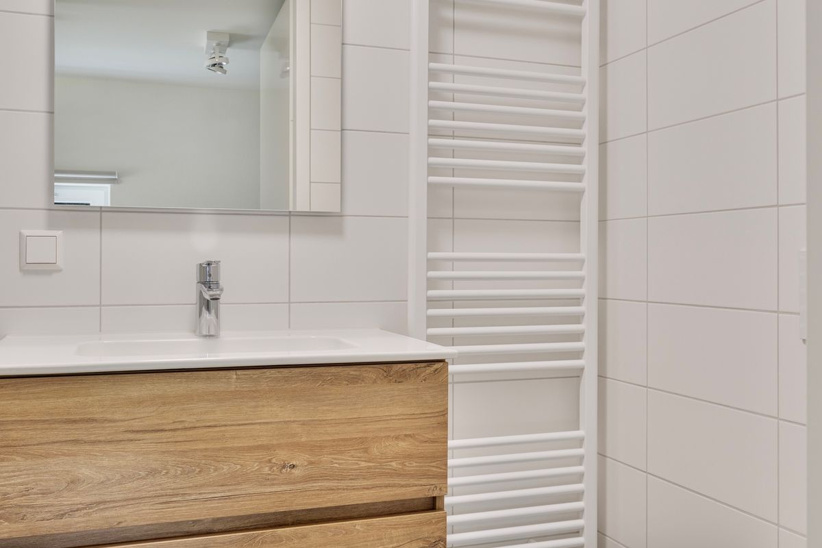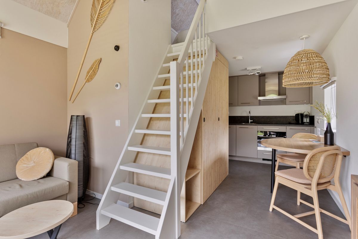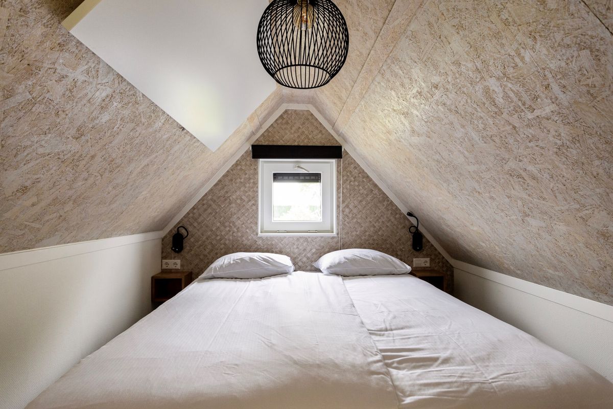 Binnen is het tiny house met zorg en oog voor detail ontworpen. Elk element draagt bij aan een harmonieuze balans tussen functionaliteit en stijl. De badkamer is modern uitgevoerd met een inloopdouche, wastafel en toilet, uitgevoerd in een frisse, eigentijdse stijl. Op de verdieping bevindt zich de knusse slaapkamer, een warme en intieme ruimte waar je heerlijk kunt uitrusten na een dag vol zon, zee en strand. Dankzij de slimme indeling en het gebruik van natuurlijke materialen straalt de hele woning rust en comfort uit.