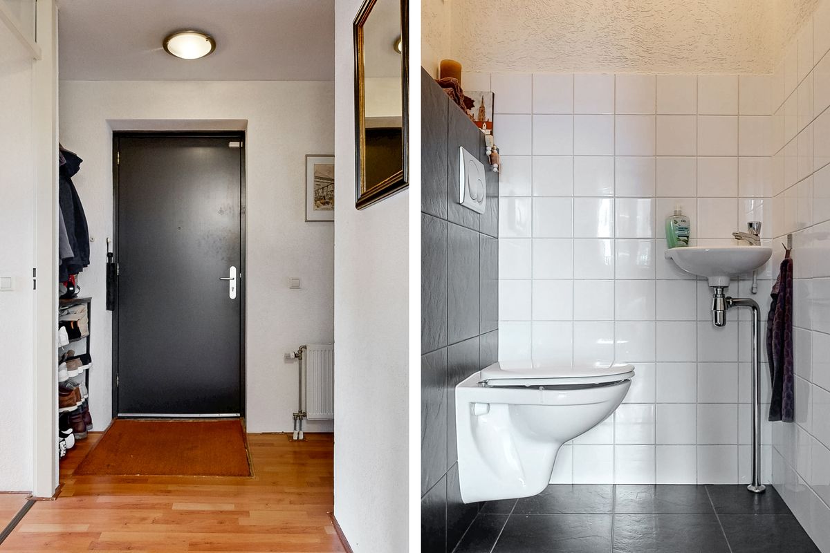 Begane grond: De ingang van het appartementengebouw met beveiligde centrale entree heeft een videofooninstallatie, brievenbussen, intercom, lift en toegang tot de parkeerkelder. Tevens is het appartementencomplex rolstoel vriendelijk (het complex is aangepast aan de vereisten voor rolstoelgebruik, dus geen drempels en voorzien van elektrisch bedienbare deuren).