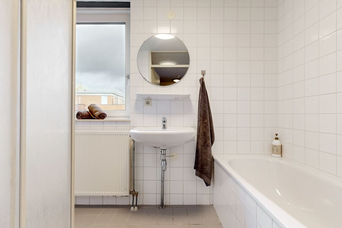 Entree, hal met meterkast, het toilet een technische ruimte met opstelplaats voor de wasmachine, droger, mechanische ventilatie-unit en CV-combi-installatie. Via de hal bereikt u de lichte, ruime woonkamer welke toegang biedt tot de serre en het balkon. De open keuken is voorzien van diverse (inbouw)apparatuur zoals een 4 pits kookplaat met afzuigkap, een koel-vries combinatie, combioven magnetron en een vaatwasser. Aan de andere kant van het appartement bevinden zich twee ruime en lichte slaapkamers en de badkamer. De badkamer is voorzien van een ligbad, aparte douche, een wastafel en een verwarmingsradiator.
