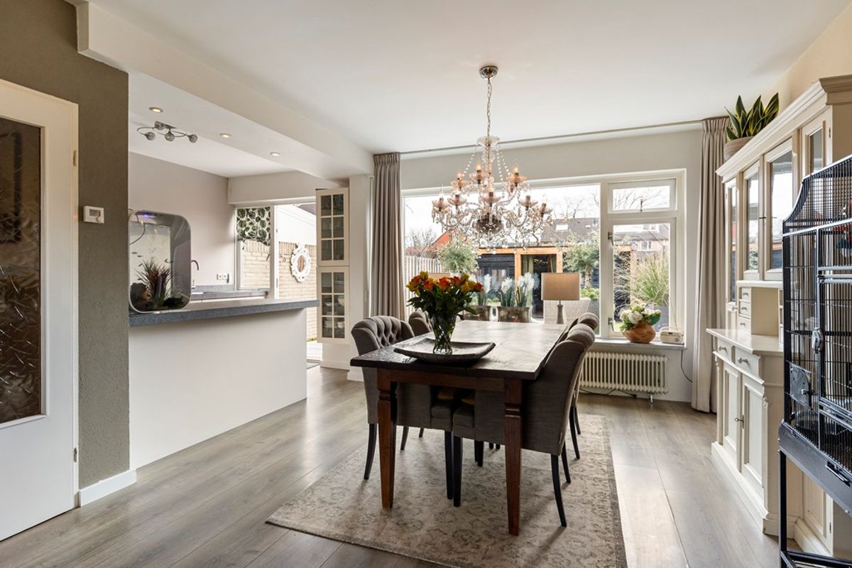Stap binnen en merk direct hoe licht en ruim het huis aanvoelt. Met een bouwjaar van 1971 tref je hier degelijke bouw waar goed is nagedacht over indeling en comfort. De royale living vormt het hart van het huis, met voldoende plek voor zowel een gezellige zithoek als een grote eettafel bij de open keuken – ideaal voor etentjes met vrienden of juist knusse avonden met het gezin.