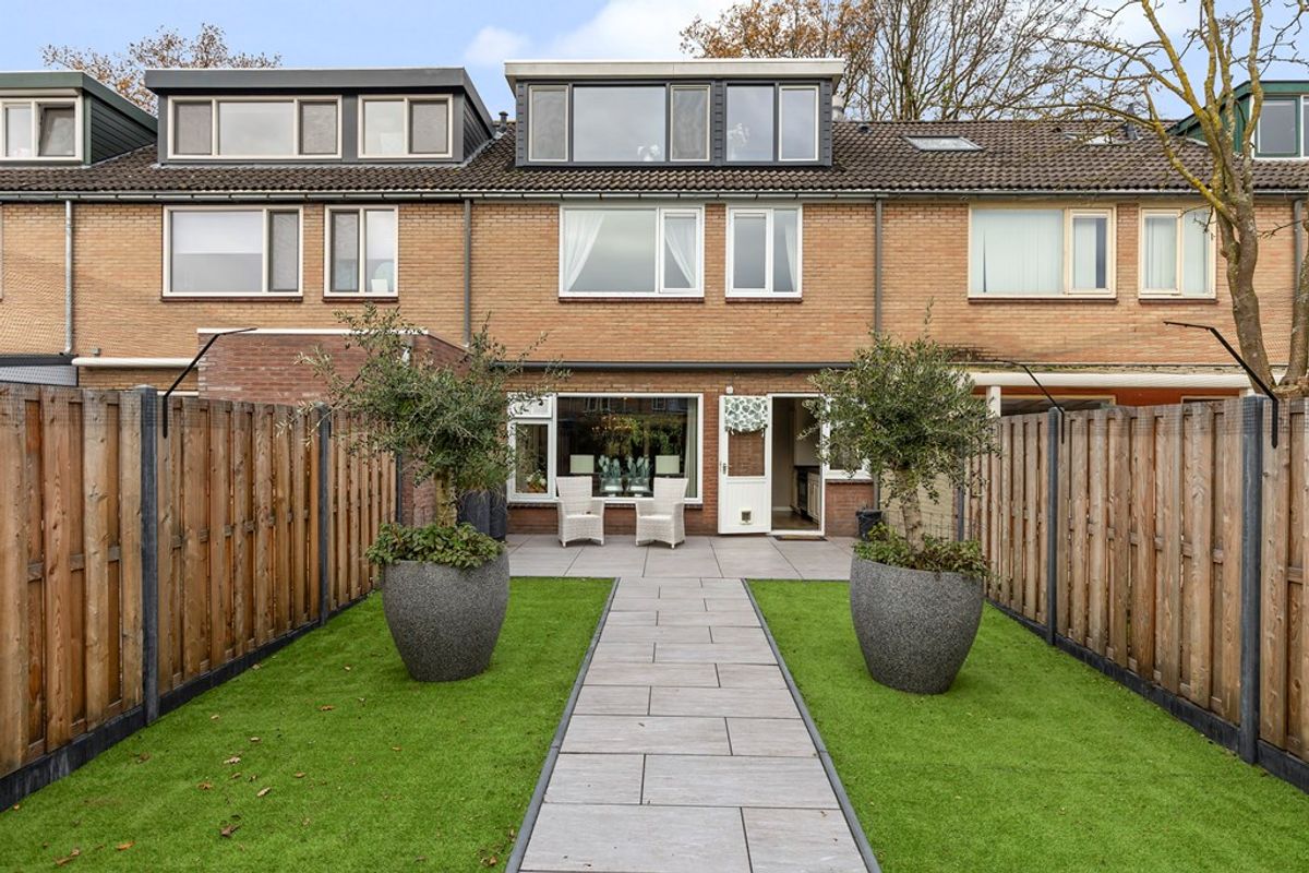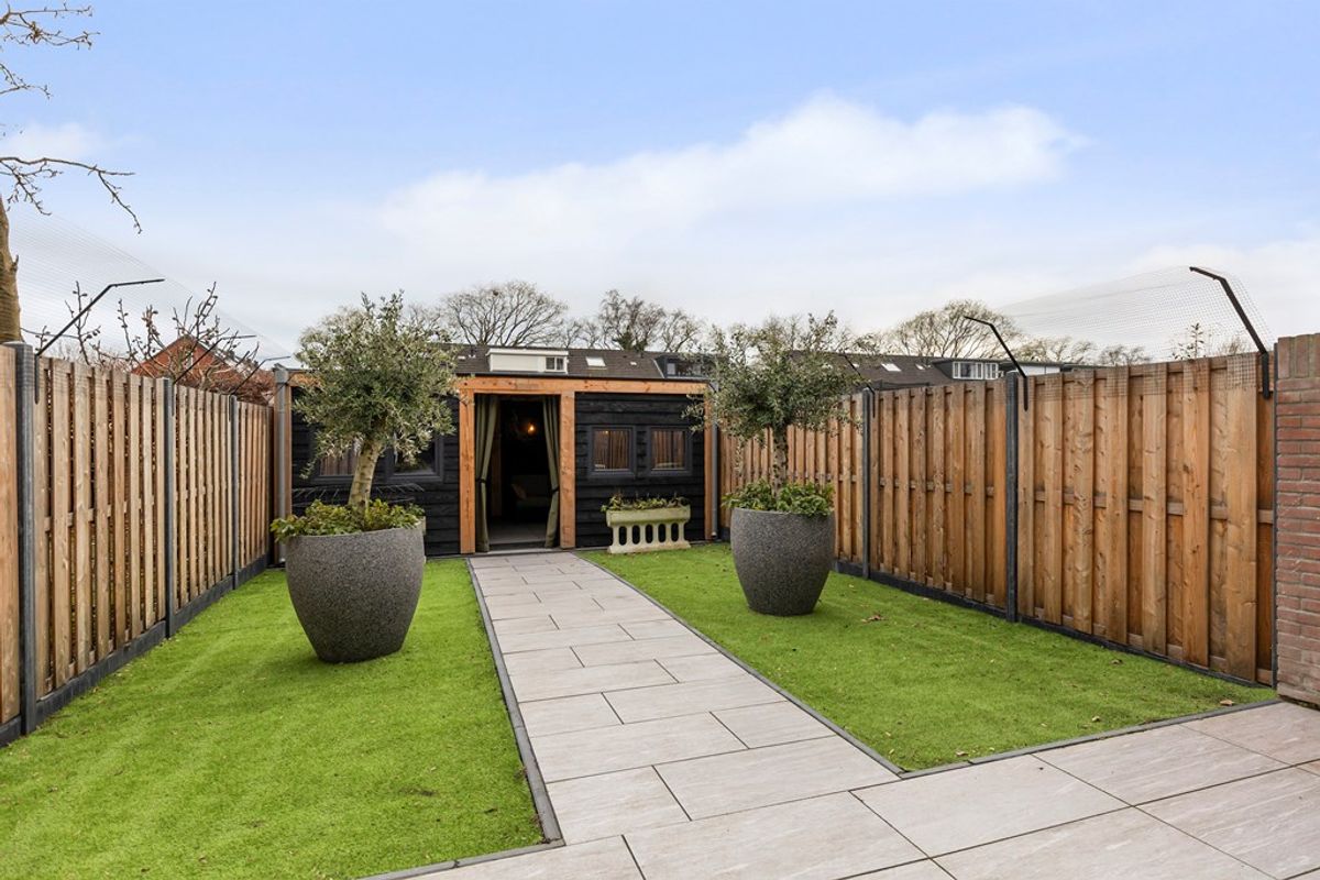 De verzorgde achtertuin is een waar verlengstuk van je woonkamer. Dankzij de ligging op een perceel van 219 m² beschik je hier over een bescheiden, maar verrassend diepe tuin, perfect op het zuiden. De combinatie van beschutting én veel licht maakt het mogelijk om op ieder moment van de dag te genieten van de zon. Kinderen kunnen er zorgeloos spelen en je hebt plek genoeg om bijvoorbeeld een trampoline of speeltoestel neer te zetten. Zin om samen buiten te eten? Dat is hier eerder regel dan uitzondering.