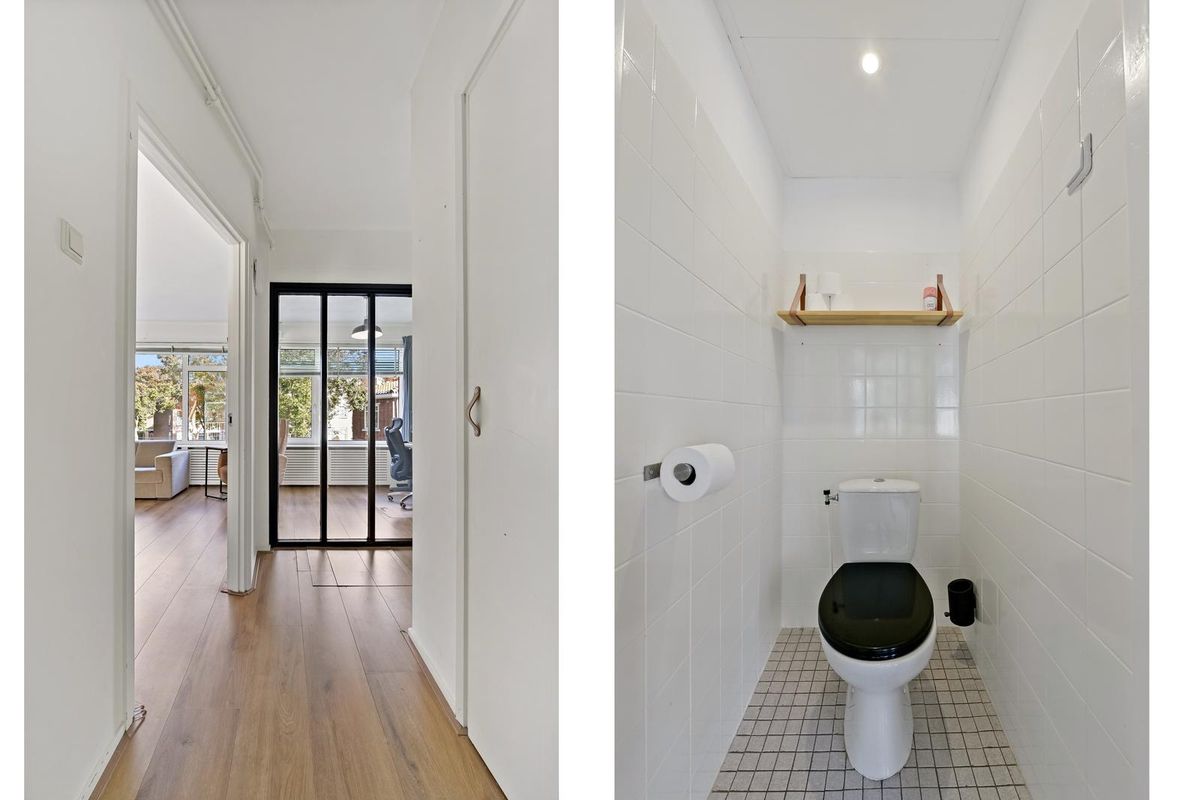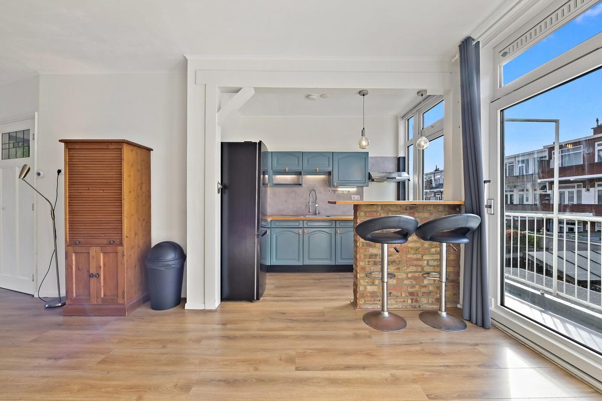 Binnenkomst in de hal met apart toilet en toegang naar de ruime en lichte woonkamer, via de aparte hal kun je met de trap naar de kapverdieping. In de hal bevindt zich op dit moment de doucheruimte. Kom binnen in de ruime woonkamer (35m2) waar veel daglicht naar binnen valt door de enorme raampartij aan de voorzijde. Aan de achterzijde bevindt zich de open keuken. Via de keuken bereikt u het balkon. Het balkon is gelegen op het westen en over de volledige breedte van de woning.
