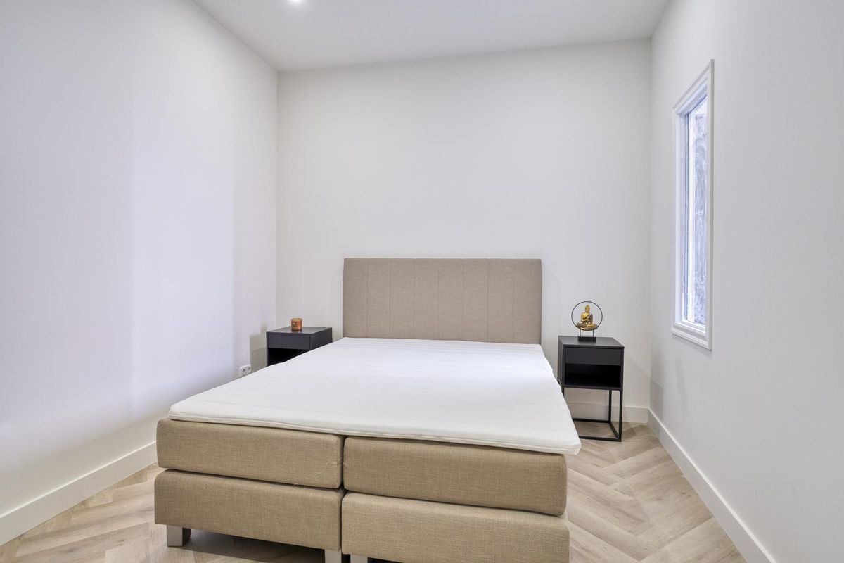 Aan de voorzijde van de woning bevindt zich de woonkamer met zithoek en eethoek, luxe open keuken voorzien van inductiekookplaat met inbouw afzuigkap, koelkast met vriesvak, magnetron, spoelbak met thermostaatkraan. ruime eethoek en smart-TV met moderne bank. Moderne en luxe uitgevoerde badkamer voorzien van vloerverwarming, step-in shower, thermostaatkraan, handdouche en regendouche.
