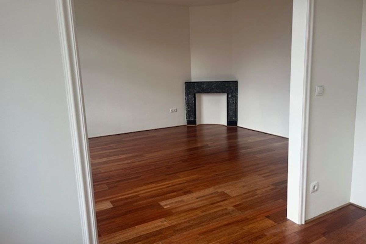 The spacious, bright living room offers unobstructed views of Legmeerplein.