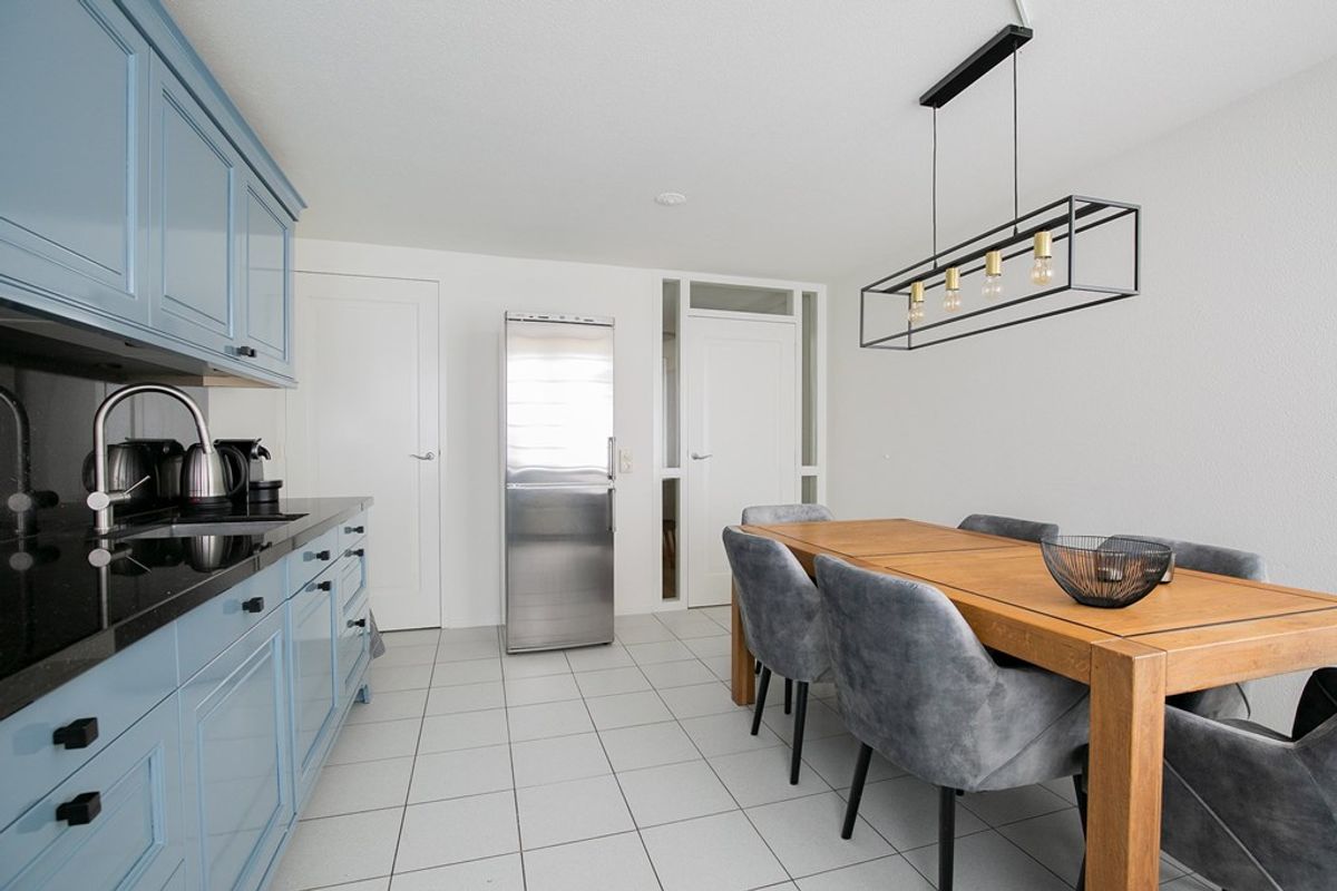 De woonkeuken is volledig uitgerust met onder andere een inductiekookplaat, oven, afzuigkap, vaatwasser grote koelkast met vriezer. In de woonkeuken bevindt zich een ruime eettafel met 6 stoelen.