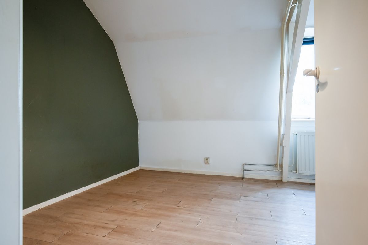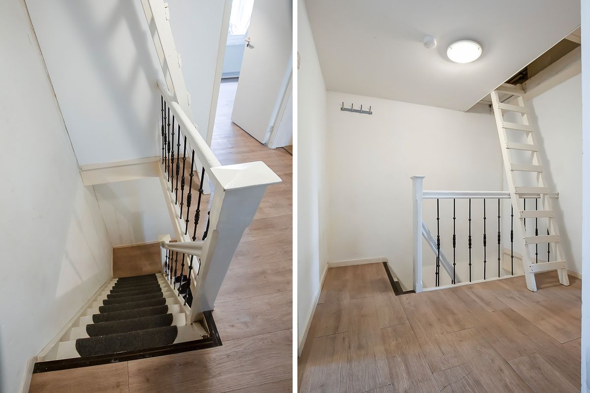 Op de eerste verdieping bevindt zich een brede, lichte woonkamer met hoge plafonds, grote ramen en een moderne halfopen keuken. Dankzij het vrije en groene uitzicht aan zowel de voor- als achterzijde geniet je hier van een heerlijk gevoel van privacy en ruimte. Op de tweede verdieping liggen twee slaapkamers — met mogelijkheid tot het creëren van een derde — een nette badkamer met 2e toilet, wastafel , douche en wasmachine aansluiting, een royale overloop en een extra tussenruimte met keukenblok, die eenvoudig kan worden ingericht als wasruimte of juist bij een slaapkamer kan worden getrokken. Via een losse trap is de ruime vliering bereikbaar, waar ook de cv-ketel is geplaatst.