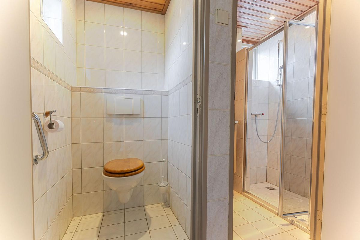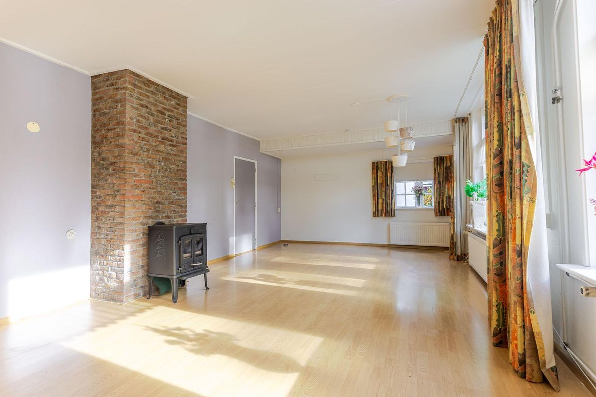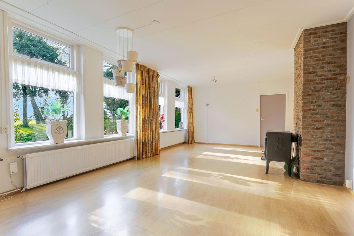 De woonkamer is zeer ruim en beschikt over een houtkachel als middelpunt. Daarnaast heb je prachtig uitzicht op de dijk. Aansluitend bevindt zich de slaapkamer op de begane grond, eveneens met vrij zicht over de landerijen.