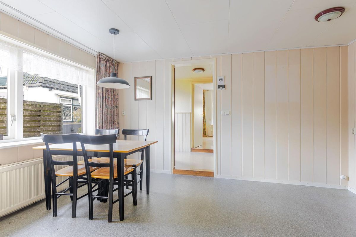 Entree via de deur aan de zijkant van de woning of uiteraard op z'n West-Fries via de achterzijde in de bijkeuken. Een praktische ruimte met doorgang naar de keuken, waar je de dag kunt starten met een kop koffie en zicht op de tuin. Vanuit de keuken heb je toegang tot de trapopgang naar de eerste verdieping of stap je door naar de sfeervolle woonkamer.