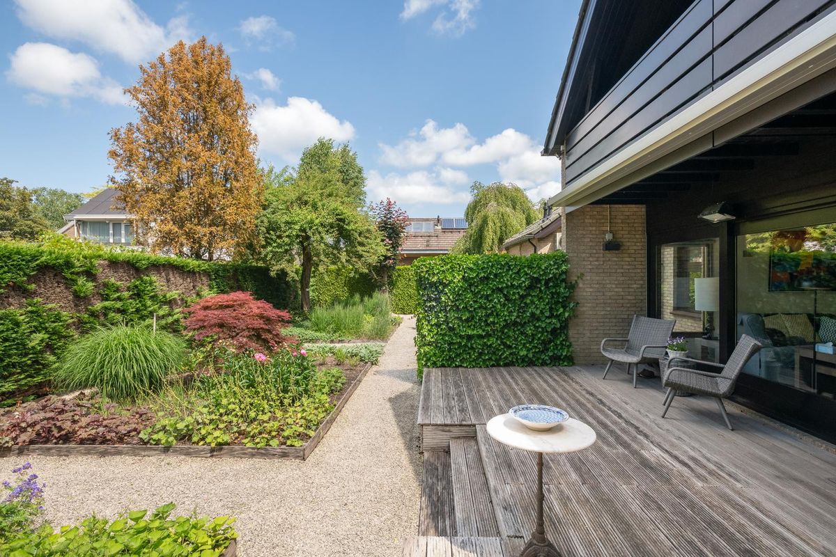 De prachtig aangelegde tuin rondom de woning biedt volop afwisseling met diverse terrassen en vlonders, groene borders, bloeiende planten en een sfeervolle ingemetselde buiten-open haard die aangesloten is op het rookkanaal. De ligging aan een sloot en de vaste groenhaag als erfafscheiding zorgen voor de privacy. Hier vindt u op ieder moment van de dag een plek waar u kunt genieten in de zon of in de schaduw! De tuin biedt toegang via een loopdeur tot de garage en de berging.