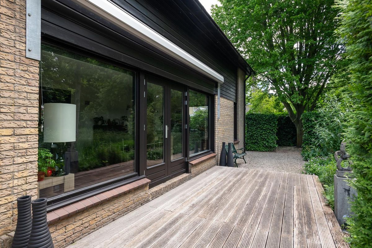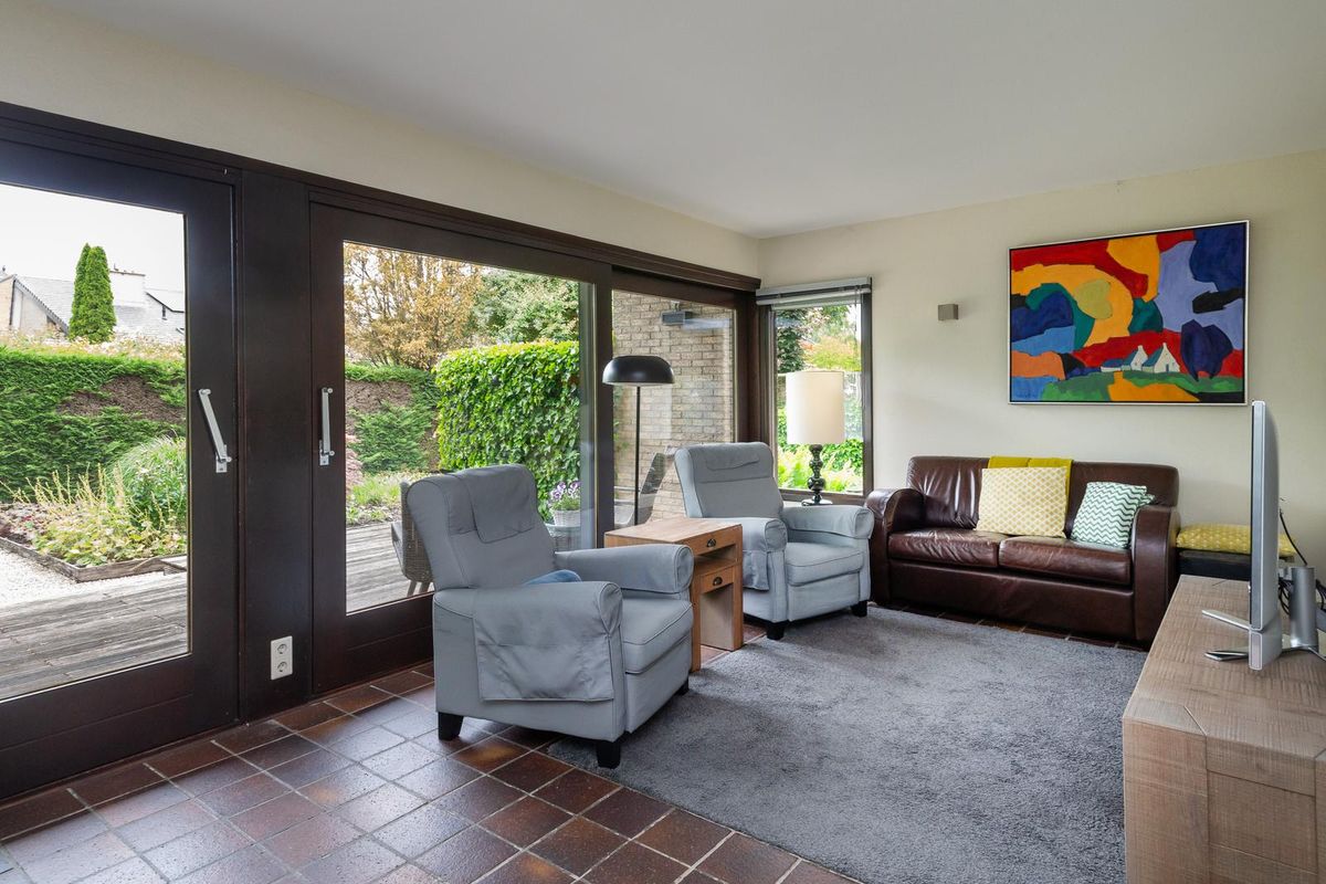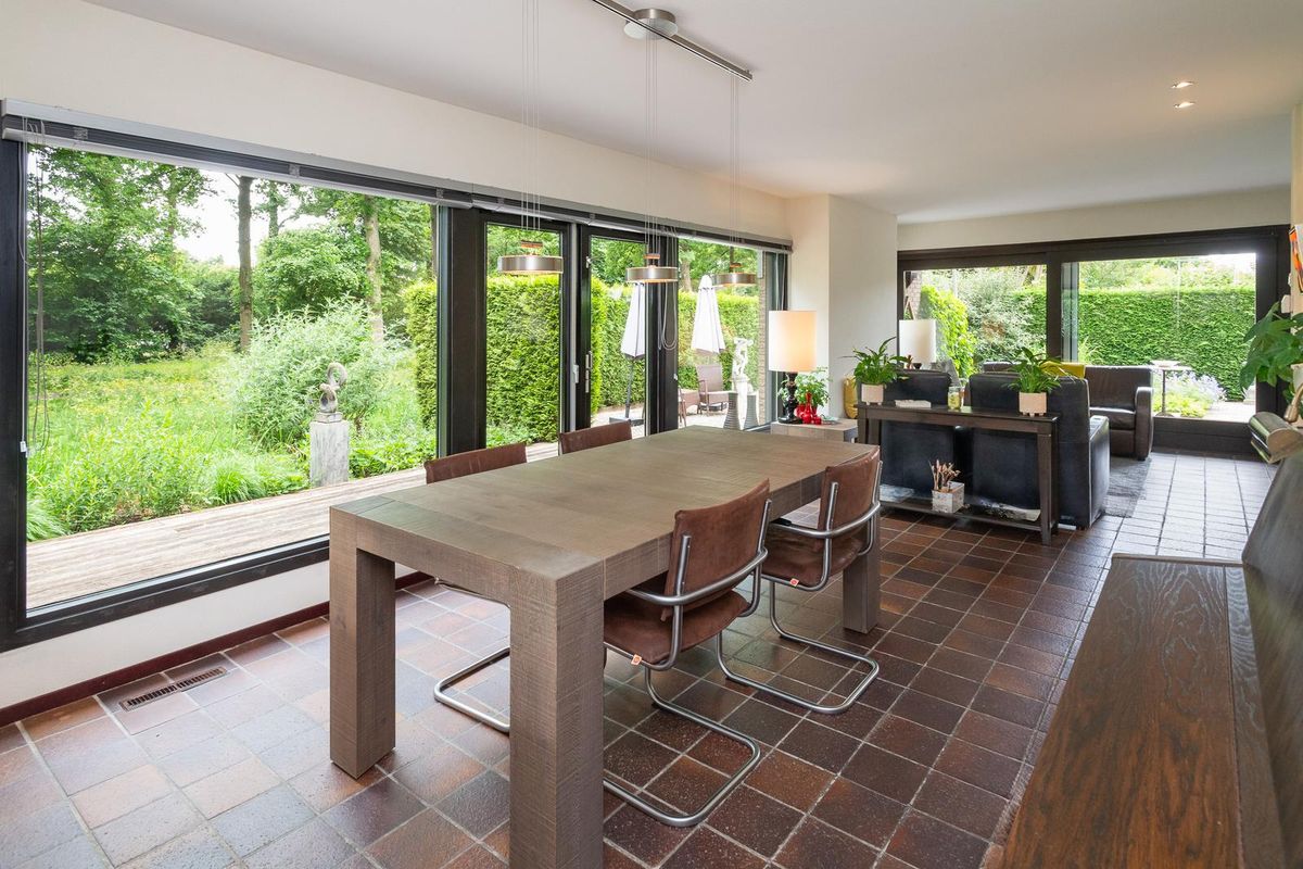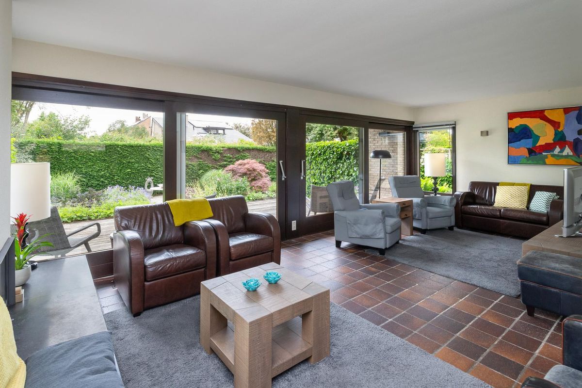 De riante living voelt heel sfeervol aan en beschikt over grote raampartijen die zorgen voor een mooi uitzicht op de tuin rondom en bieden een overvloed aan daglicht, sfeervolle open haard, openslaande deuren naar de zijtuin en een schuifpui naar de achtertuin. De living staat in open verbinding met de iets lager gelegen keuken (split-level), welke is voorzien van inbouwapparatuur waaronder een keramische kookplaat, afzuigkap, vaatwasser, dubbele spoelbak met zwarte Quooker-kraan en een granieten werkblad met een doorlopende achterwand.