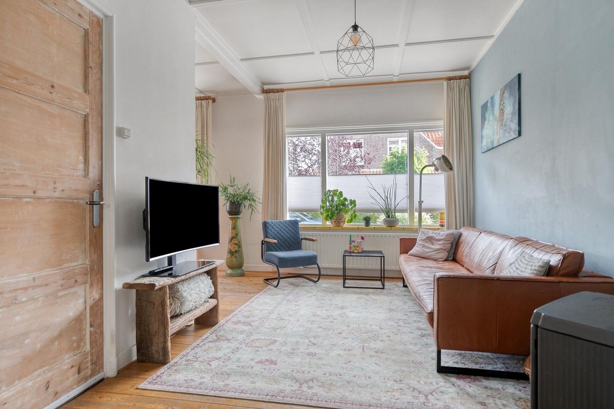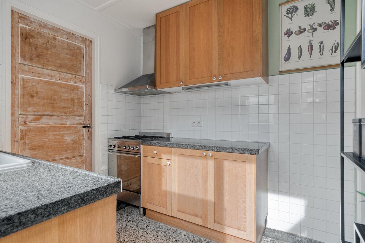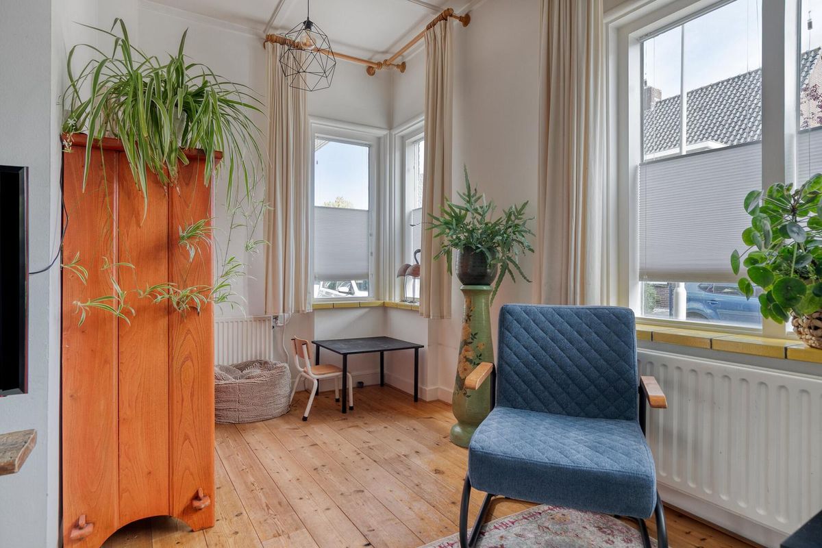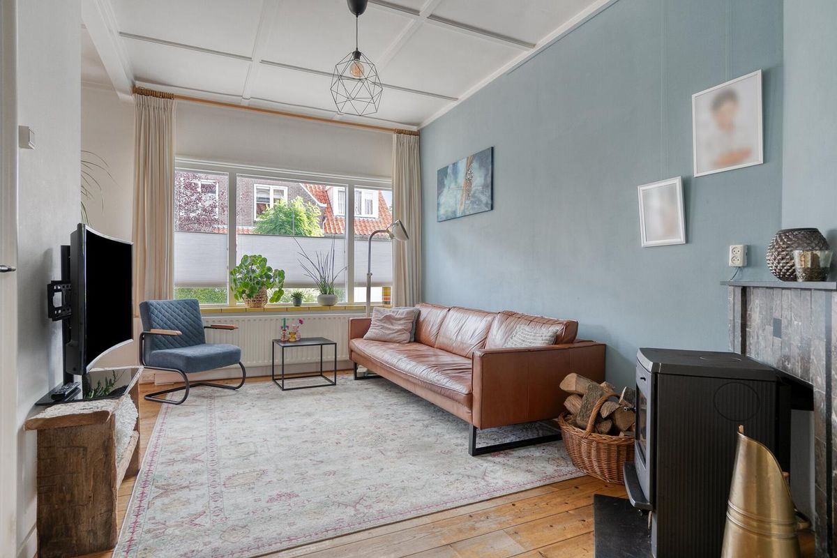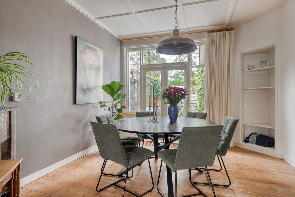 De woonkamer is zoals in een jaren dertig woning betaamd in en-suite opstelling vormgegeven. De originele schuifdeuren tussen de voor- en achterkamer zijn nog aanwezig waarmee de woonkamer de sfeer biedt die u van een dergelijke woning mag verwachten. Het algehele uitrustings- en afwerkingsniveau in deze woning zijn smaakvol en kwalitatief uitgevoerd. Let vooral op de sfeervolle originele schouw, strakke wandafwerking en smaakvolle originele aspecten. De houtkachel welke in de voorkamer is te vinden biedt u gezelligheid en warmte.