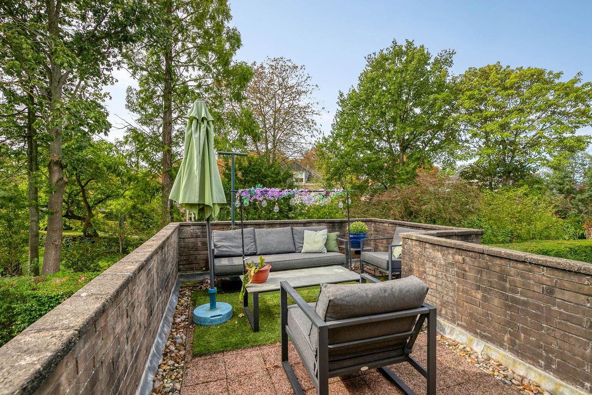 De woning beschikt over een heerlijke gezellige en knusse achtertuin. Deze achtertuin is op het westen georiënteerd en heeft hiermee een heerlijke zonligging. Door de beschutte ligging tegen het achterliggende groen aan biedt deze achtertuin u veel privacy. De tuin beschikt aan de achterzijde over een vrije achterom welke naar de Leliestraat leidt.