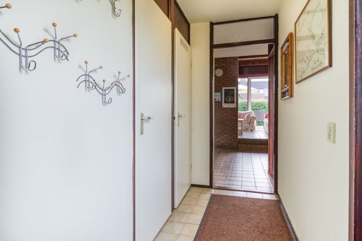 Via de entree komt u in de hal met meterkast en ruimte voor de garderobe. Tevens bevindt zich hier een bijkeuken met wasmachine, droger en koelkast met vriesvak. Vanuit de hal is er toegang tot de badkamer met douche en wastafel, een apart toilet met fonteintje en de woonkamer. Bij binnenkomst in de woonkamer komt u eerst in het keukengedeelte met eethoek. Hier is ook de toegang naar de op de begane grond gelegen slaapkamer. De keuken is voorzien van: 4-pits gaskookplaat, afzuigkap, spoelbak en vaatwasmachine. De eethoek ligt twee tredes lager als de zithoek en staat in open verbinding met elkaar. In de zithoek is er een open haard voor de gezellige winterse avonden en een schuifdeur naar het terras en de tuin.