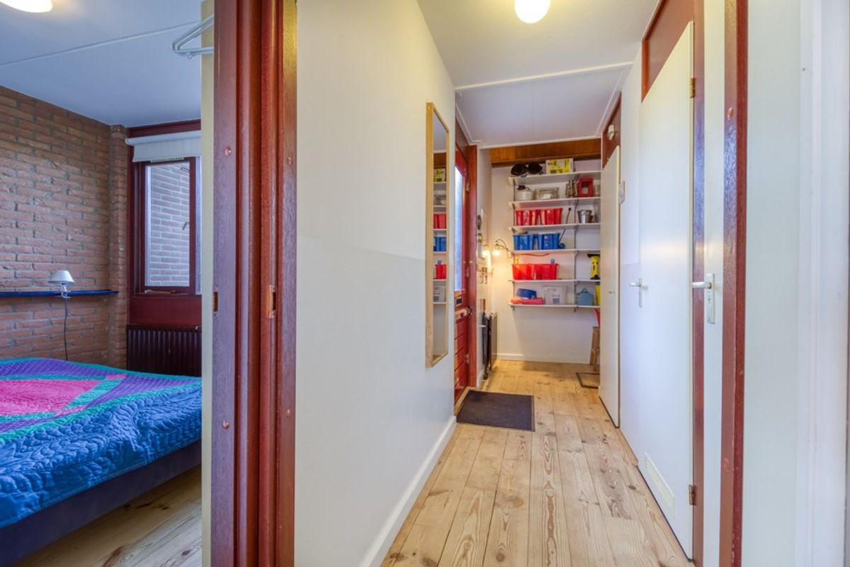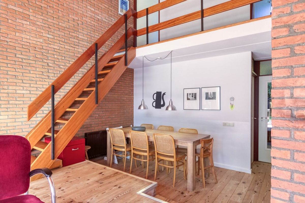Via de trap in de woonkamer is de eerste verdieping te bereiken. Hier bevindt zich een overloop met ruimte om een bureau te zetten zodat dit perfect kan dienen als werkplek. Tevens zijn de 2 slaapkamers te bereiken vanaf de overloop.