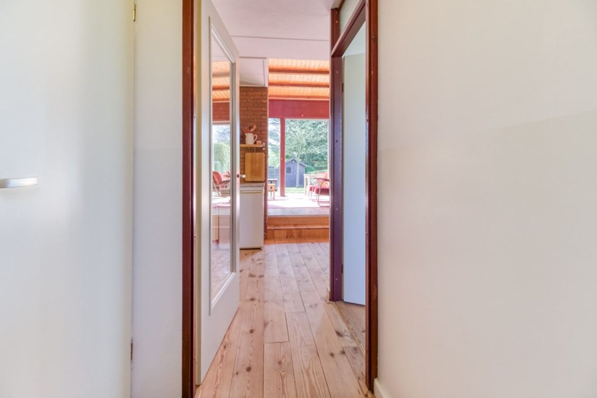 Via de entree komt u in de hal met meterkast en ruimte voor de garderobe. Tevens bevindt zich hier een kleine berging met ruimte voor het opbergen van huishoudelijke spullen. Vanuit de hal is er toegang tot de badkamer met douche en wastafel, apart toilet met fonteintje, de op de begane grond gelegen slaapkamer en de woonkamer. Bij binnenkomst in de woonkamer komt u eerst in het keukengedeelte met eethoek. De keuken is voorzien van: 4-pits inductie kookplaat, afzuigkap, spoelbak, oven en losse koelkast. De eethoek ligt twee tredes lager als de zithoek en staat in open verbinding met elkaar. In de zithoek is er een haard voor de gezellige winterse avonden en een schuifdeur naar het terras en de tuin. Door de gunstige zonligging en de grote ramen schijnt de zon aangenaam binnen in de woonkamer.