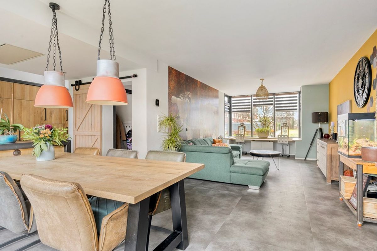 Binnen valt direct de sfeervolle woonkamer op: licht, uitnodigend en prettig ingedeeld. De open keuken sluit hier naadloos op aan, waardoor een fijne leefruimte ontstaat waar koken, eten en ontspannen moeiteloos samenkomen. Of u nu gezellig met het gezin aan tafel zit of vrienden ontvangt: dit is een huis dat klopt.