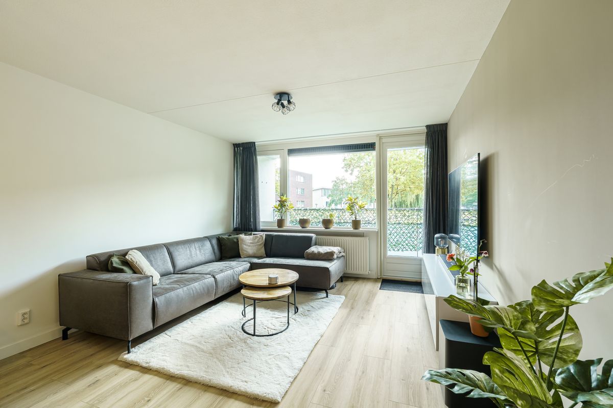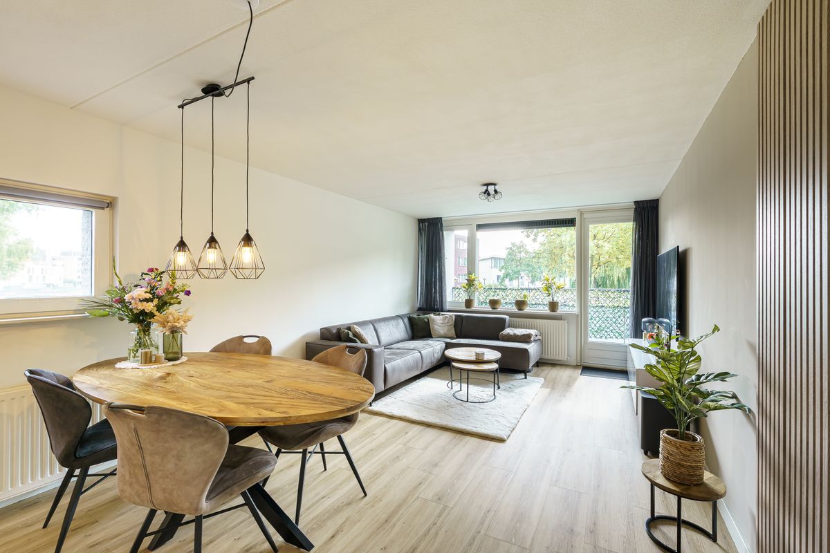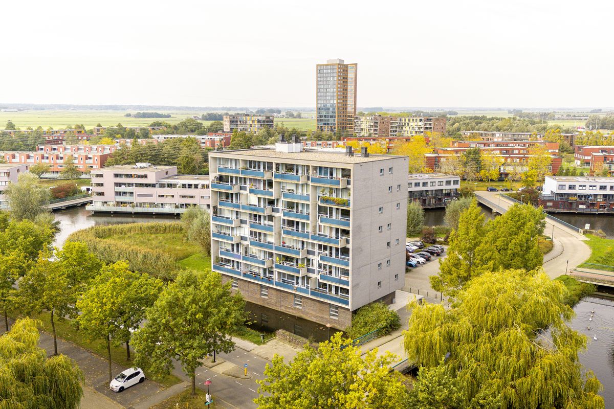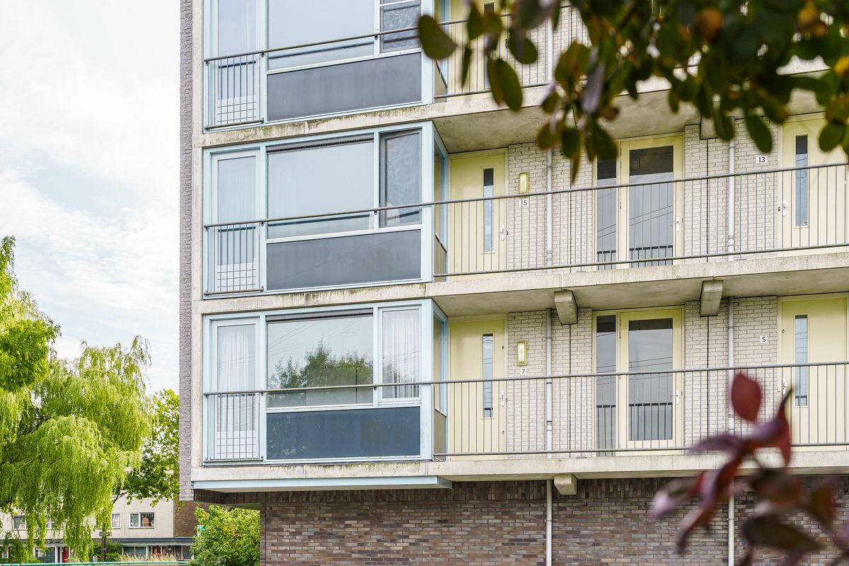De woonkamer voelt extra ruim aan door het extra zijraam; een voordeel van de hoekligging van het appartement. Vanuit zowel de woonkamer als de achterste slaapkamer heb je toegang tot het woningbrede balkon. De tweede slaapkamer ligt aan de voorzijde van het appartement en is opvallend ruim, omdat de galerij ophoudt bij de voordeur en je daardoor extra ruimte hebt in de slaapkamer. De eerste verdieping is bereikbaar met de trap of met de lift.