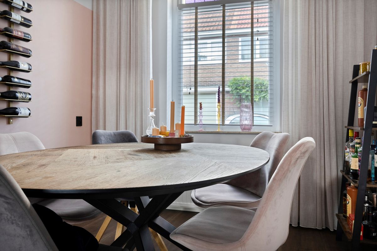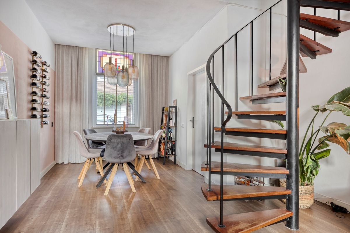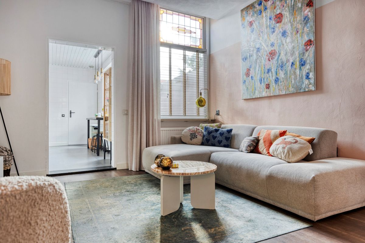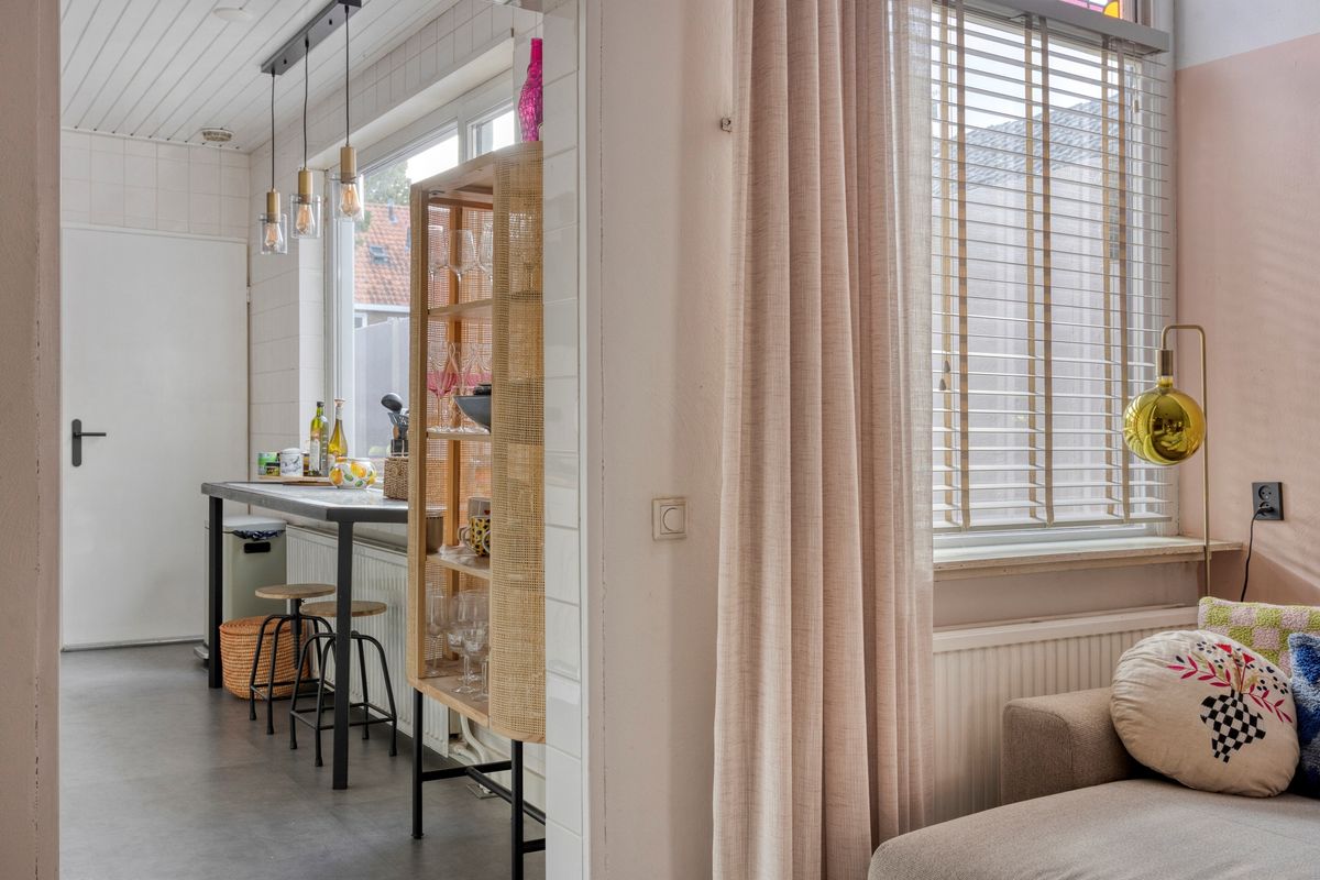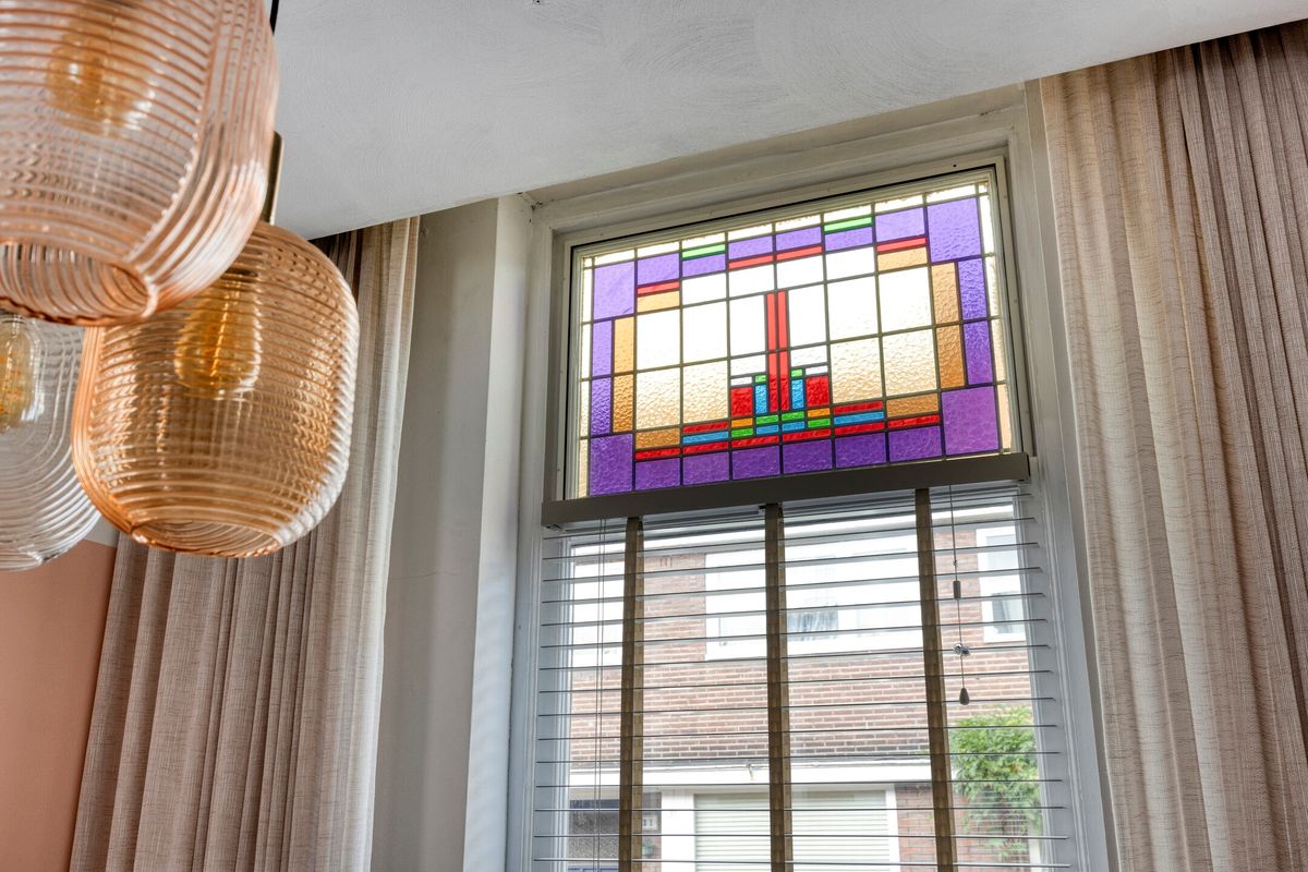 Als je aankomt bij de woning valt meteen het prachtige glas-in-loodraam op in voordeur en het raam aan de voorzijde. In de hal bevindt zich de garderobe en de meterkast (2019) en via de toegangsdeur loop je de woonkamer binnen. Aan de voorzijde is het eetgedeelte gelegen en aan de achterzijde de woonkamer met aansluitend de keuken. Het zitgedeelte heeft ook een glas-in-loodraam en doordat dit gedeelte aan de achterzijde ligt heb je veel privacy als je na een dag hard werken lekker op de bank neerploft. In de woonkamer tref je de trap naar boven aan en het gehele woongedeelte is afgewerkt met een unieke laminaatvloer (2022).